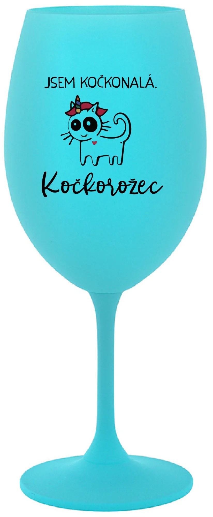 JSEM KOČKONALÁ. KOČKOROŽEC - tyrkysová sklenice na víno 350 ml