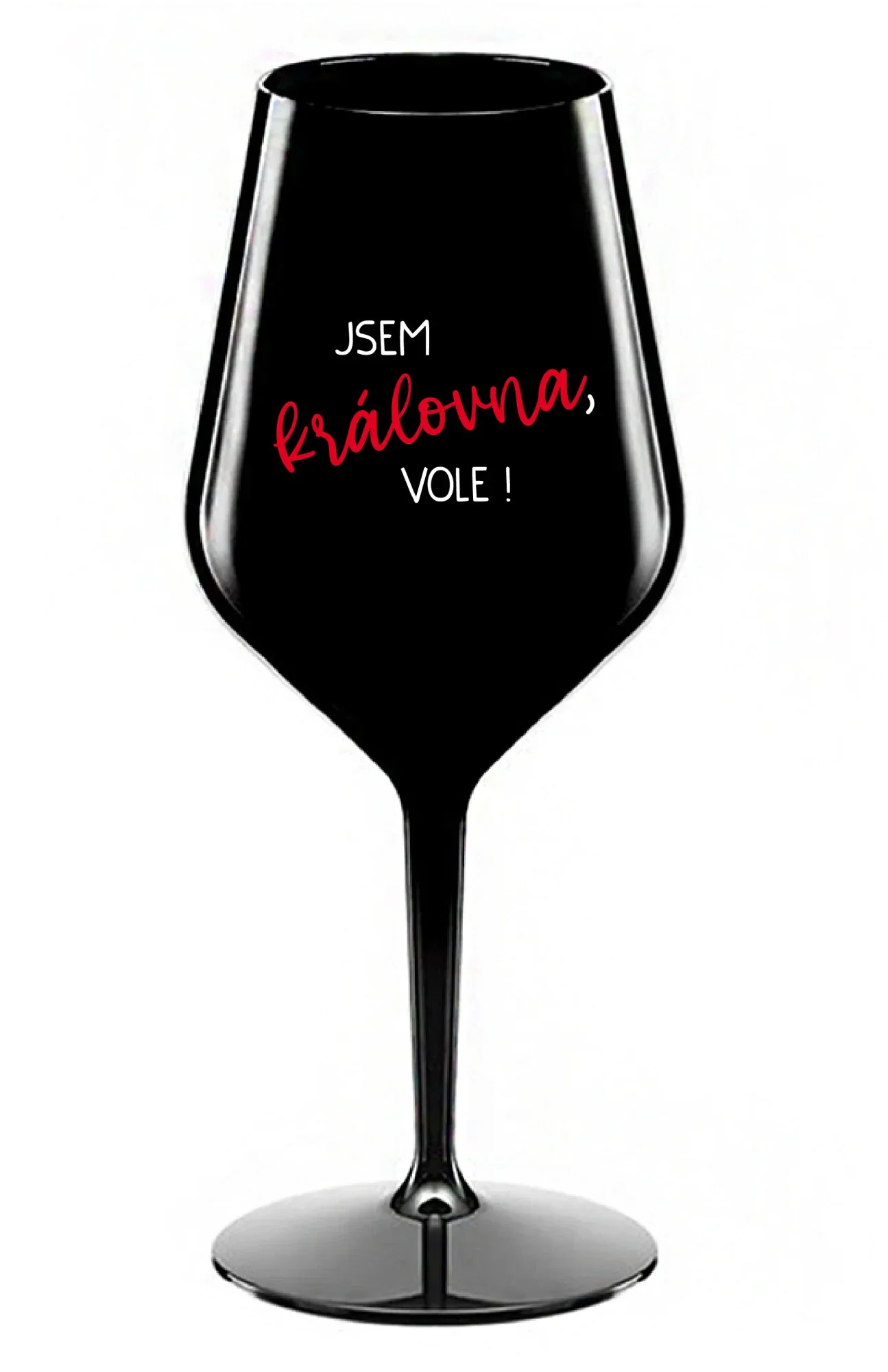JSEM KRÁLOVNA, VOLE! - černá nerozbitná sklenice na víno 470 ml