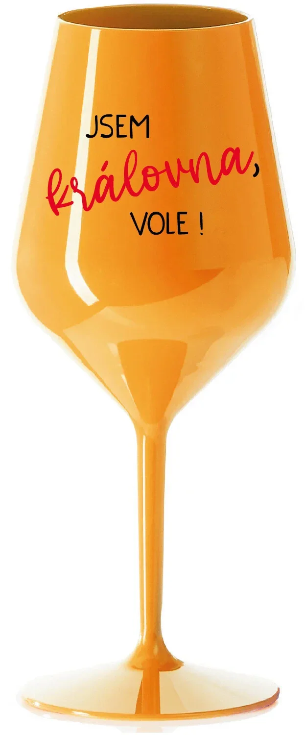 JSEM KRÁLOVNA, VOLE! - oranžová nerozbitná sklenice na víno 470 ml