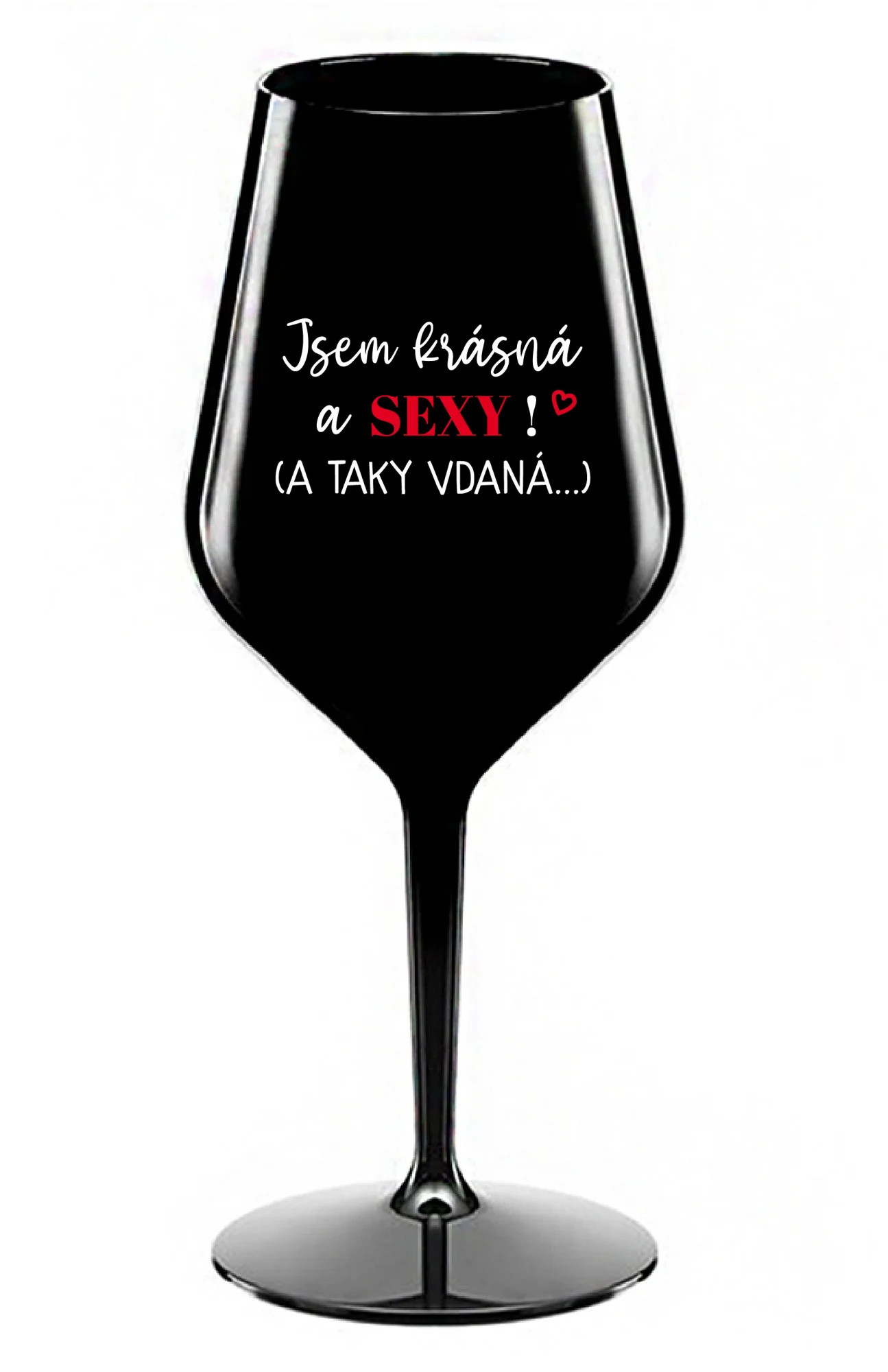 JSEM KRÁSNÁ A SEXY! (A TAKY VDANÁ...) - černá nerozbitná sklenice na víno 470 ml