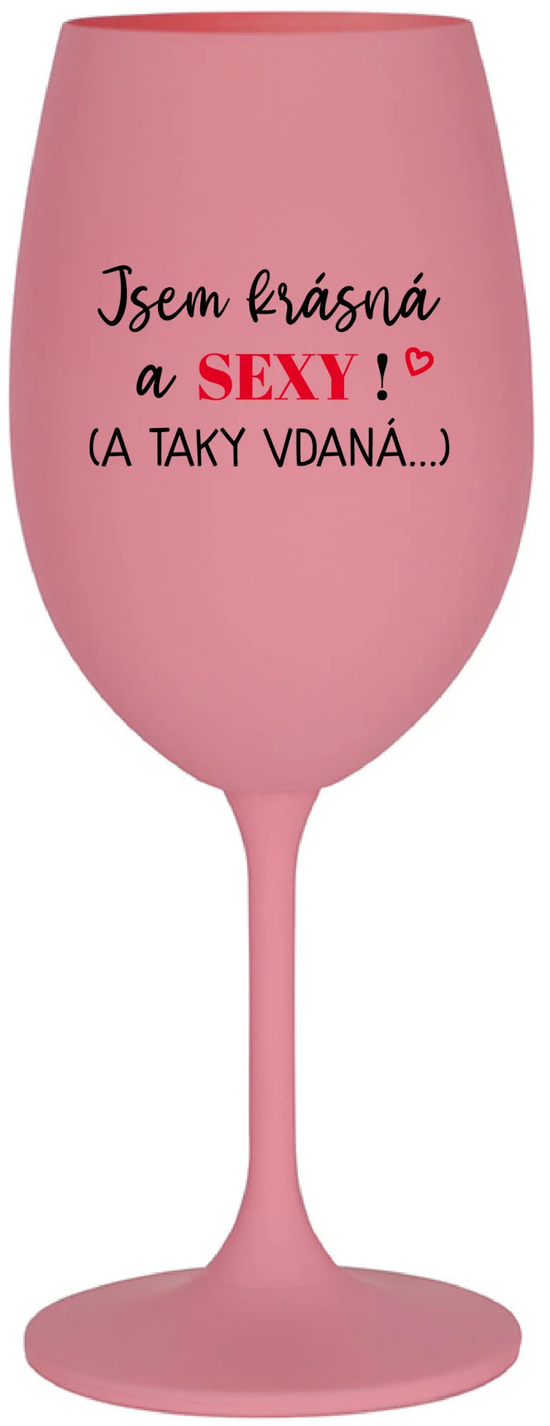 JSEM KRÁSNÁ A SEXY! (A TAKY VDANÁ...) - růžová sklenice na víno 350 ml