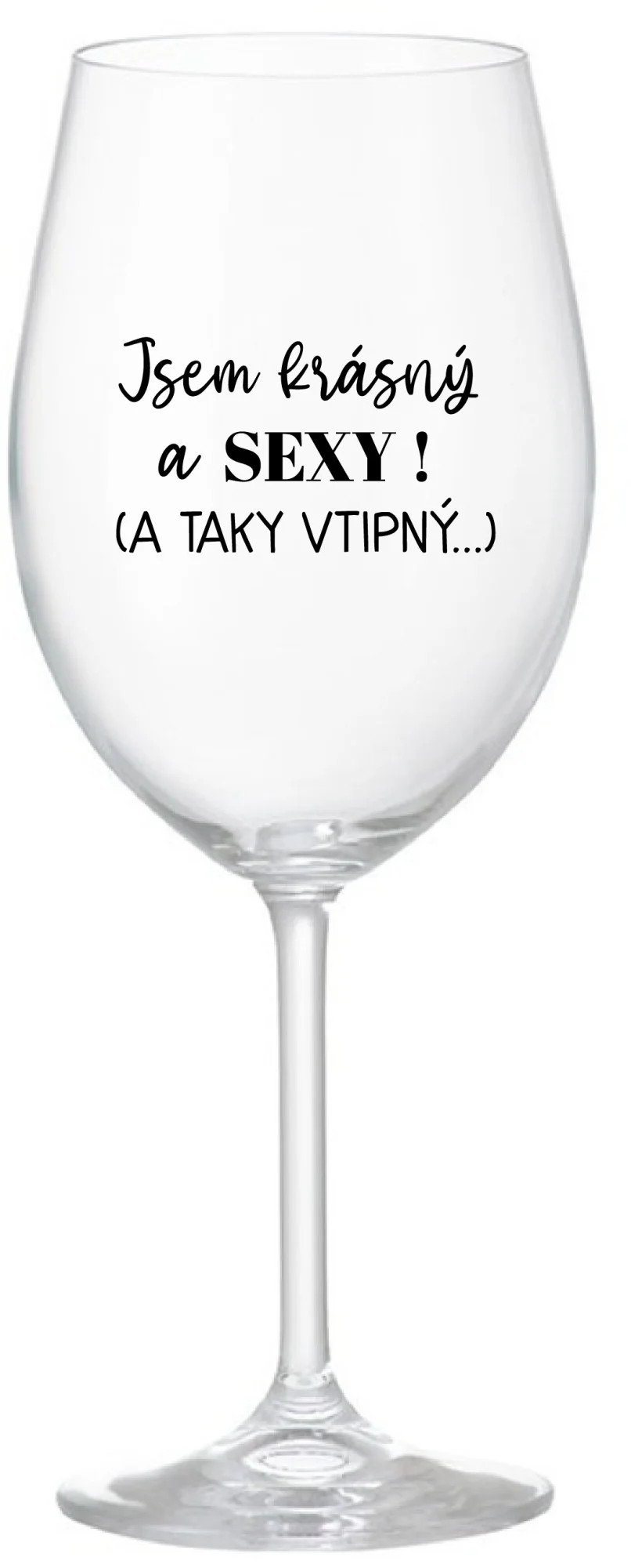 JSEM KRÁSNÝ A SEXY! (A TAKY VTIPNÝ...) - čirá sklenice na víno 350 ml