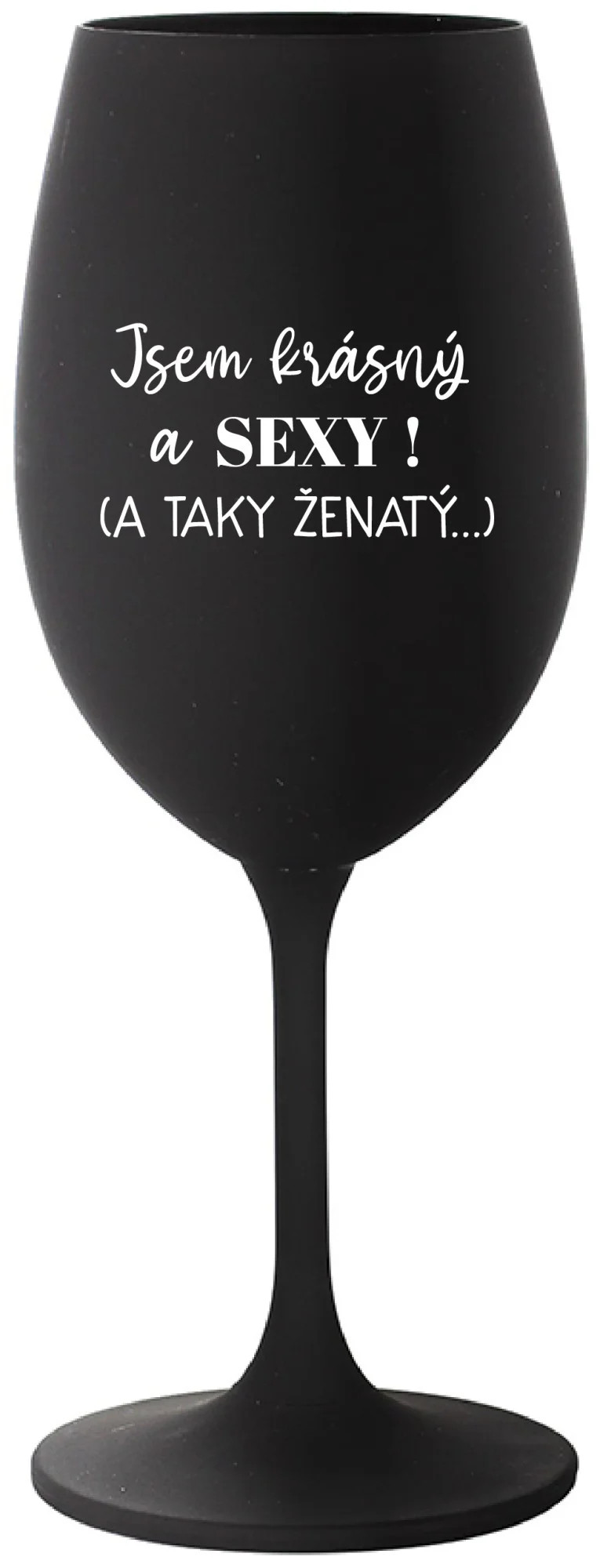 JSEM KRÁSNÝ A SEXY! (A TAKY ŽENATÝ...) - černá sklenice na víno 350 ml
