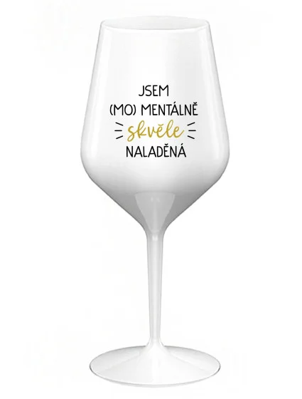 JSEM (MO)MENTÁLNE SKVELE NALADENÁ - biely nerozbitný pohár na víno 470 ml