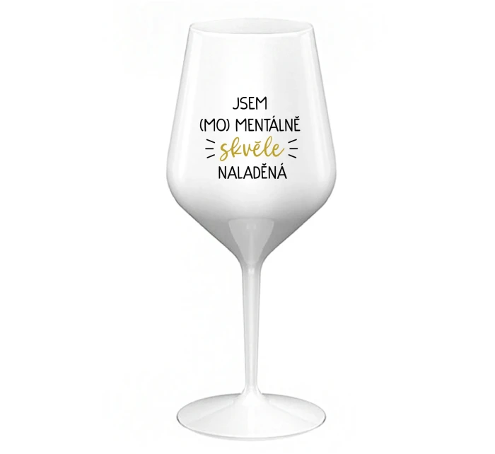 JSEM (MO)MENTÁLNĚ SKVĚLE NALADĚNÁ - bílá nerozbitná sklenice na víno 470 ml