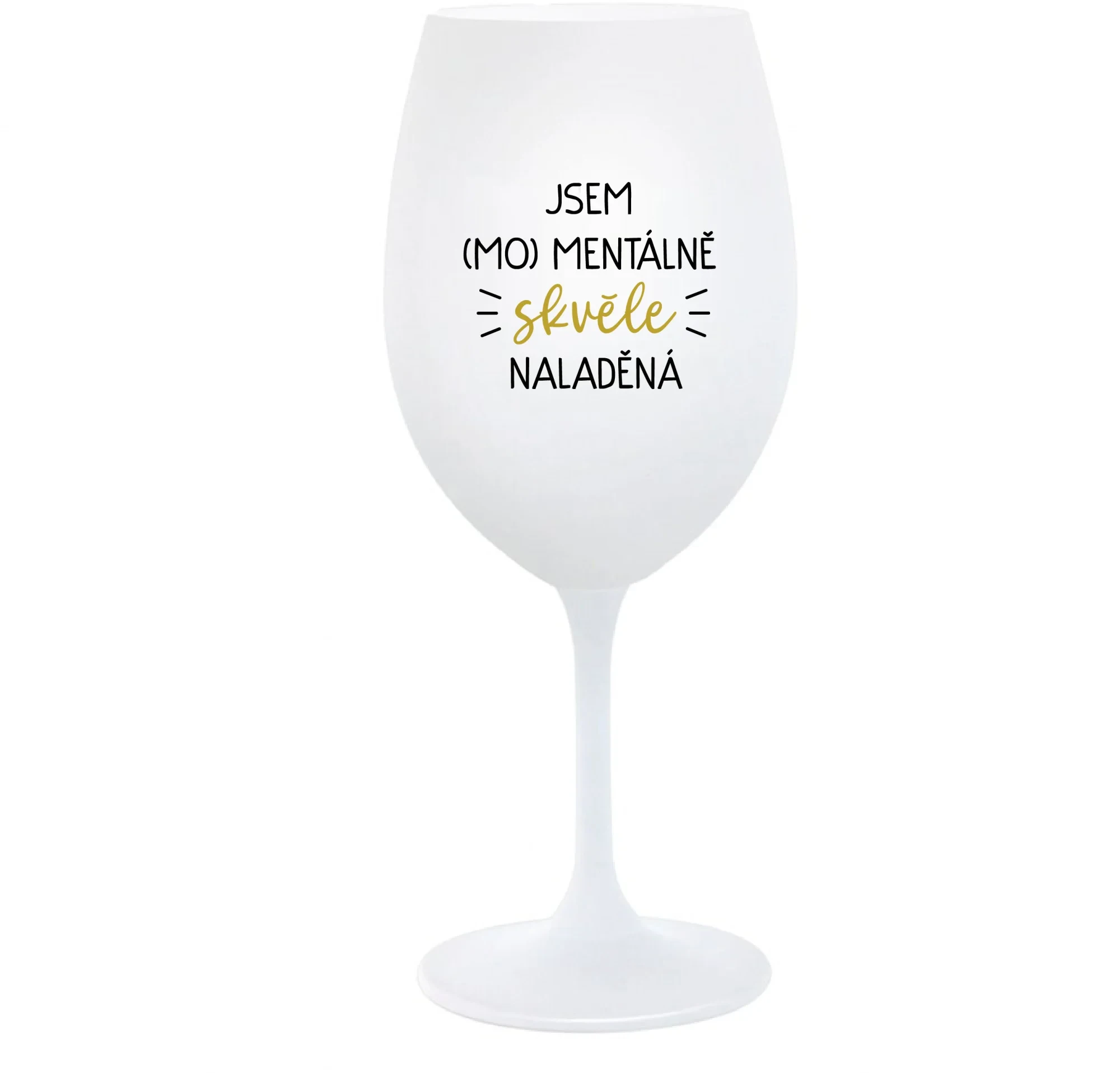 JSEM (MO)MENTÁLNĚ SKVĚLE NALADĚNÁ - bílá sklenice na víno 350 ml