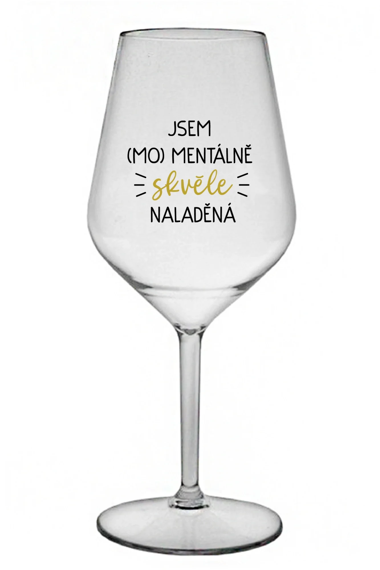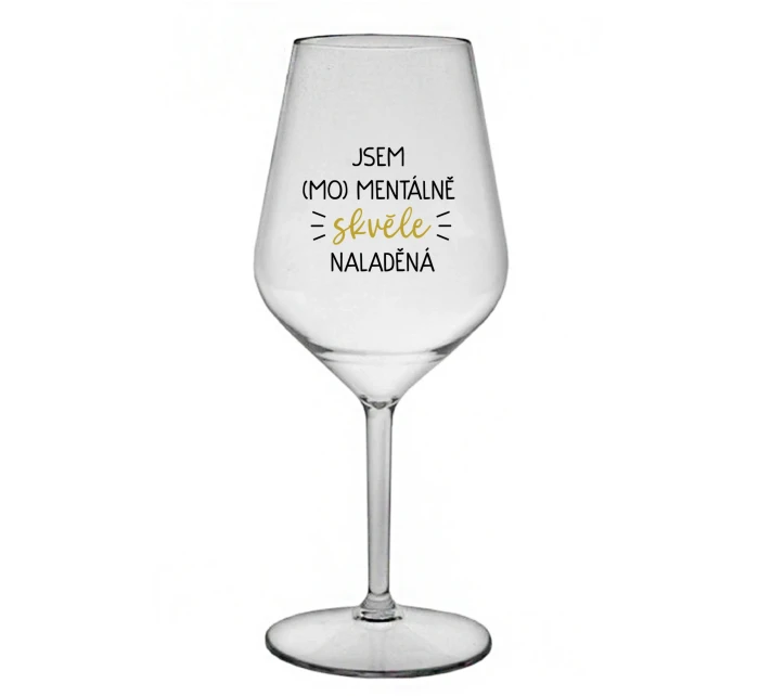 JSEM (MO)MENTÁLNĚ SKVĚLE NALADĚNÁ - čirá nerozbitná sklenice na víno 470 ml