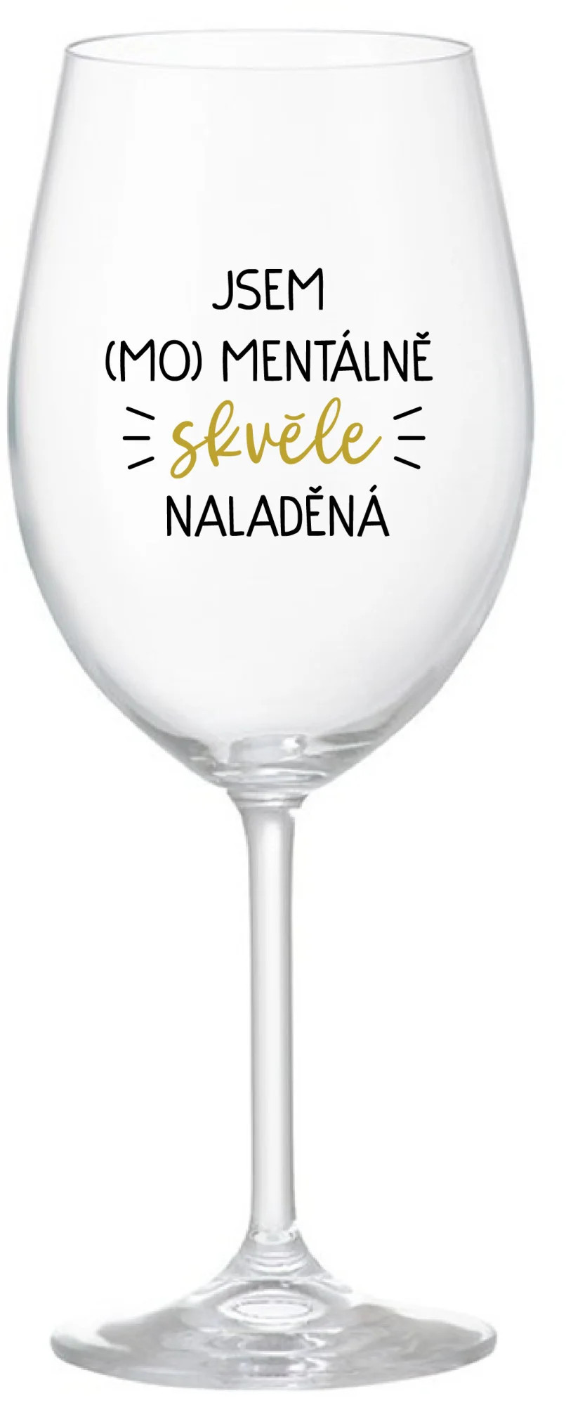Vinná čirá sklenice s originálním motivem JSEM (MO)MENTÁLNĚ SKVĚLE NALADĚNÁ je krásným a osobitým dárkem, které ale využijete i Vy sami třeba ve chvílích, kdy si budete chtít zpříjemnit náročný den. Tyto originální vinné sklenice jsou totiž nejen pro výjimečné události, ale i pro běžné večery, které si chcete zpříjemnit sklenkou dobrého vína. Jistě proto potěší každého milovníka vína, i toho, kdo si umí svůj život vychutnat plnými doušky.