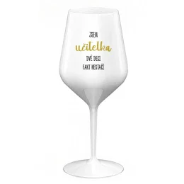 JSEM UČITELKA, DVĚ DECI FAKT NESTAČÍ - bílá nerozbitná sklenice na víno 470 ml