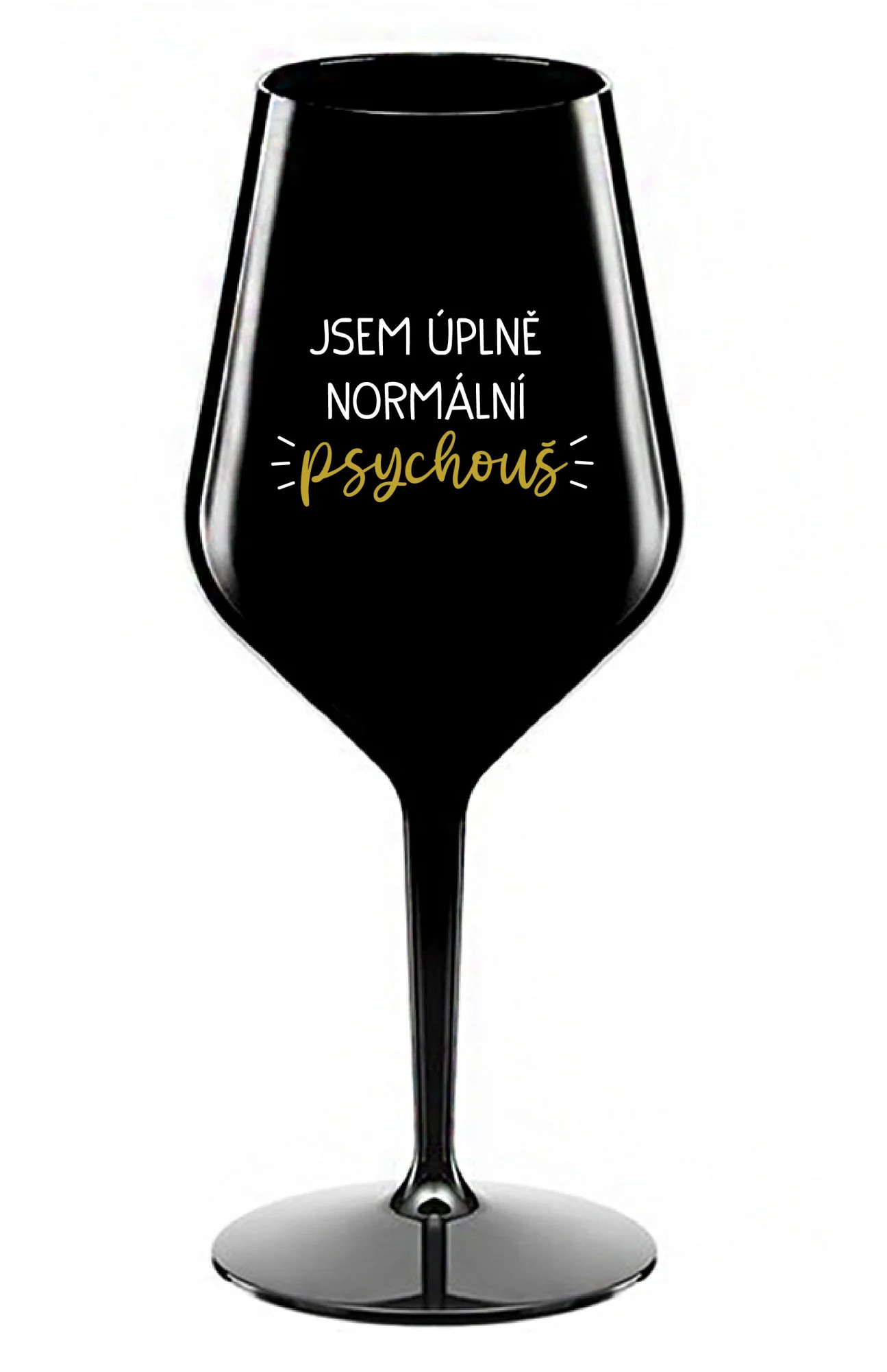JSEM ÚPLNĚ NORMÁLNÍ PSYCHOUŠ - černá nerozbitná sklenice na víno 470 ml