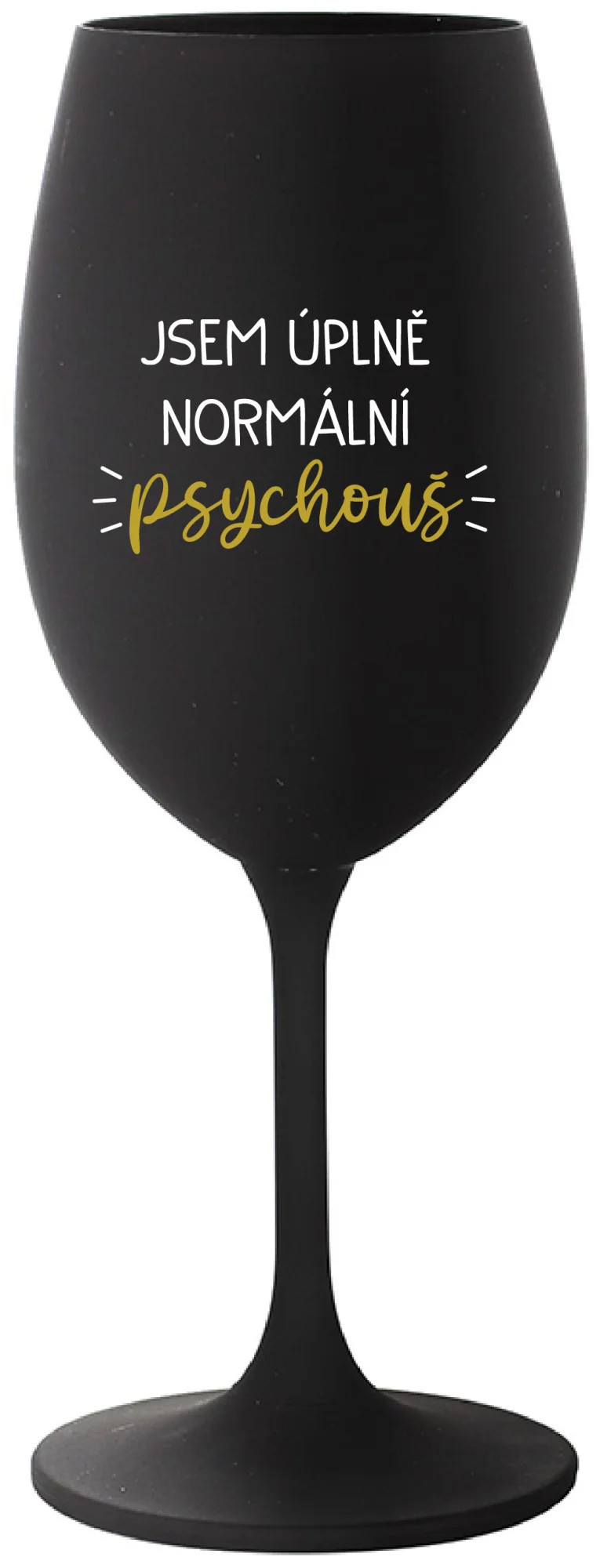 JSEM ÚPLNĚ NORMÁLNÍ PSYCHOUŠ - černá sklenice na víno 350 ml