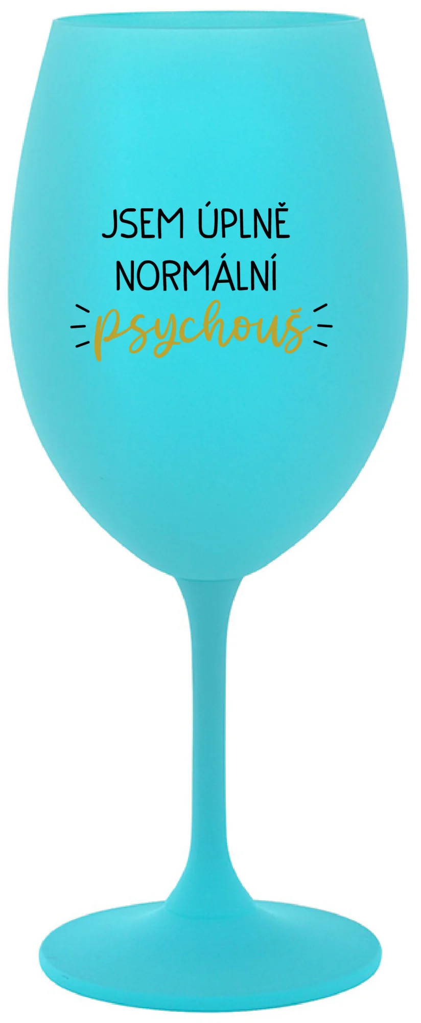 JSEM ÚPLNĚ NORMÁLNÍ PSYCHOUŠ - tyrkysová sklenice na víno 350 ml