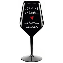 JSEM VE VZTAHU S TÍMTO VÍNEM - černá nerozbitná sklenice na víno 470 ml