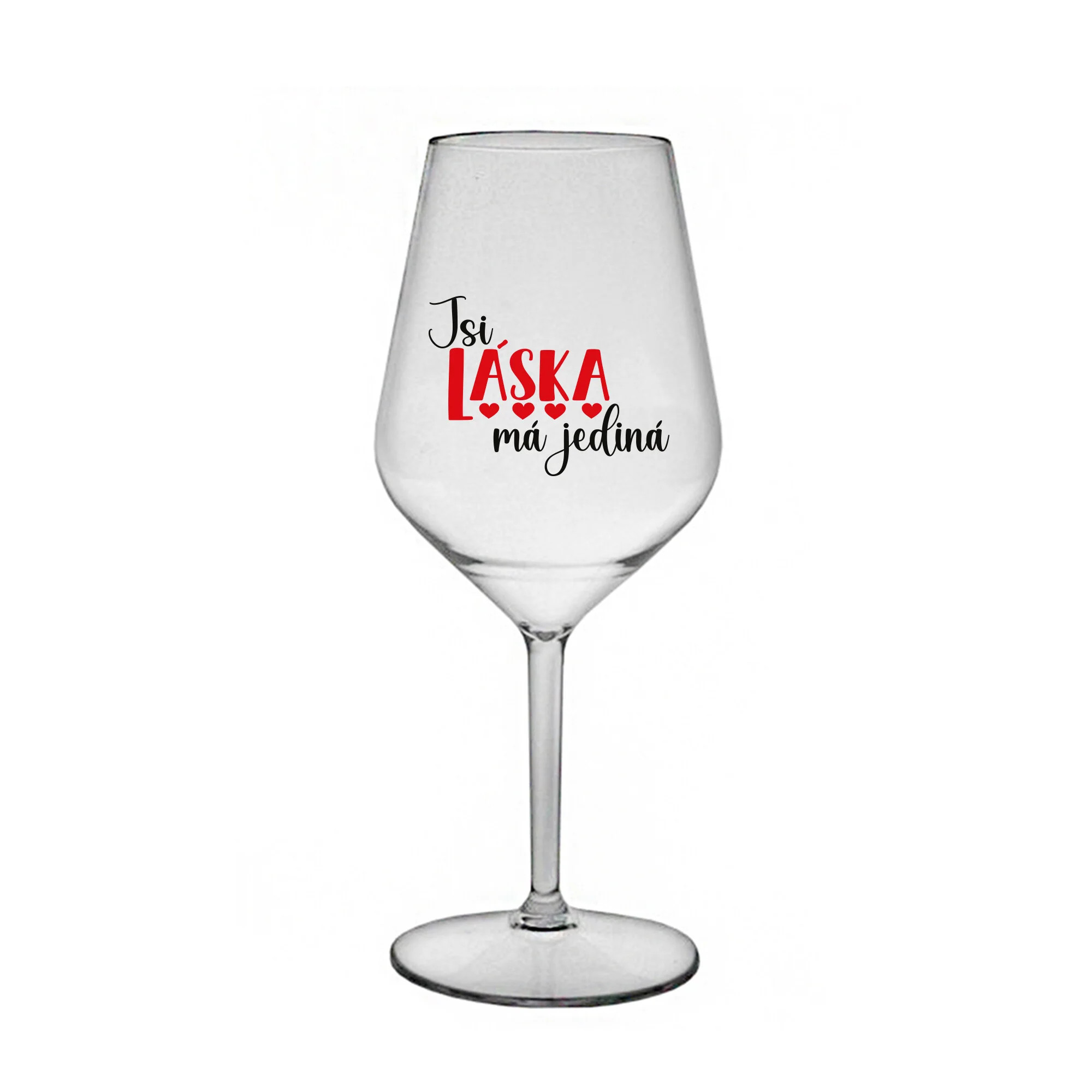 JSI LÁSKA MÁ JEDINÁ - čirá nerozbitná sklenice na víno 470 ml