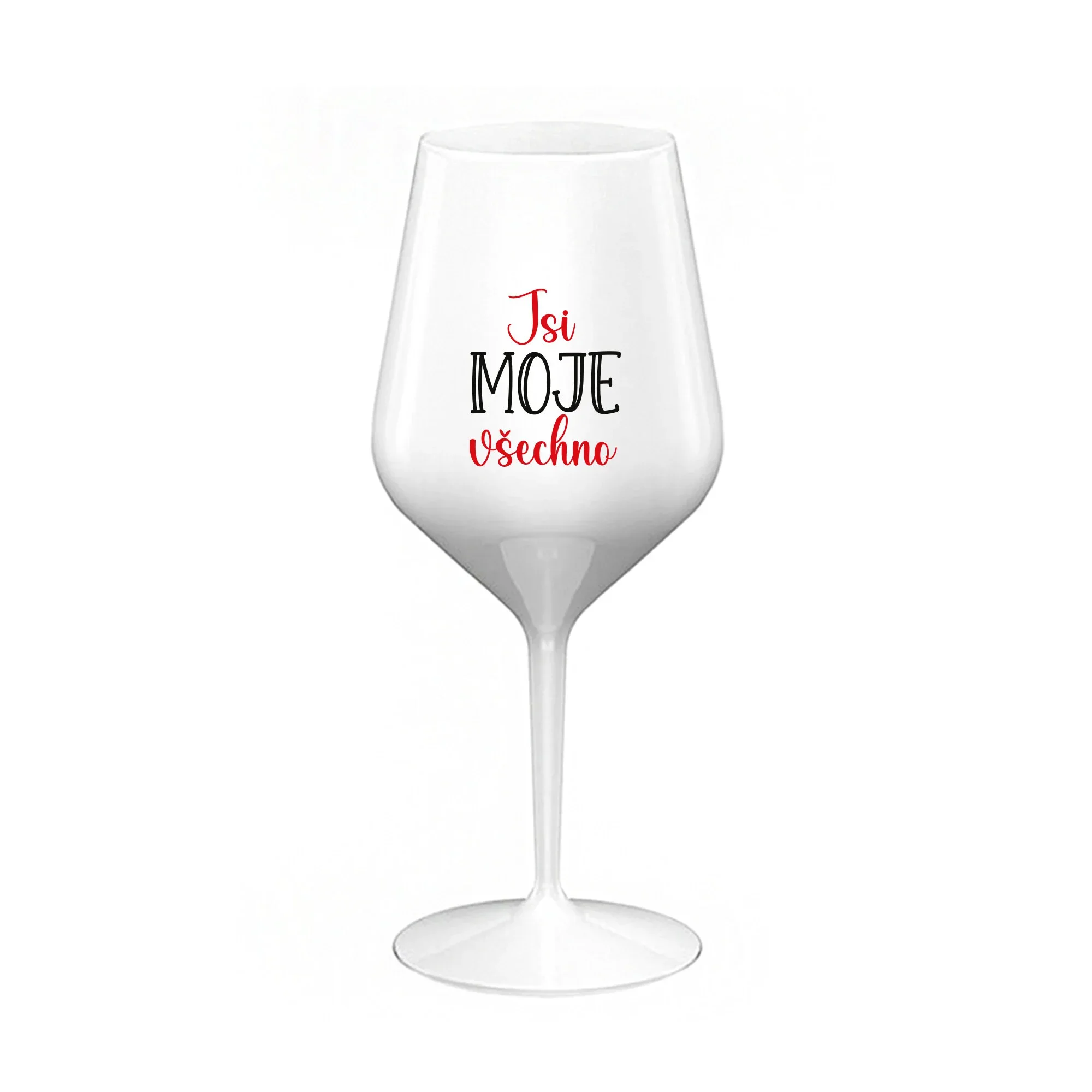 JSI MOJE VŠECHNO - bílá nerozbitná sklenice na víno 470 ml