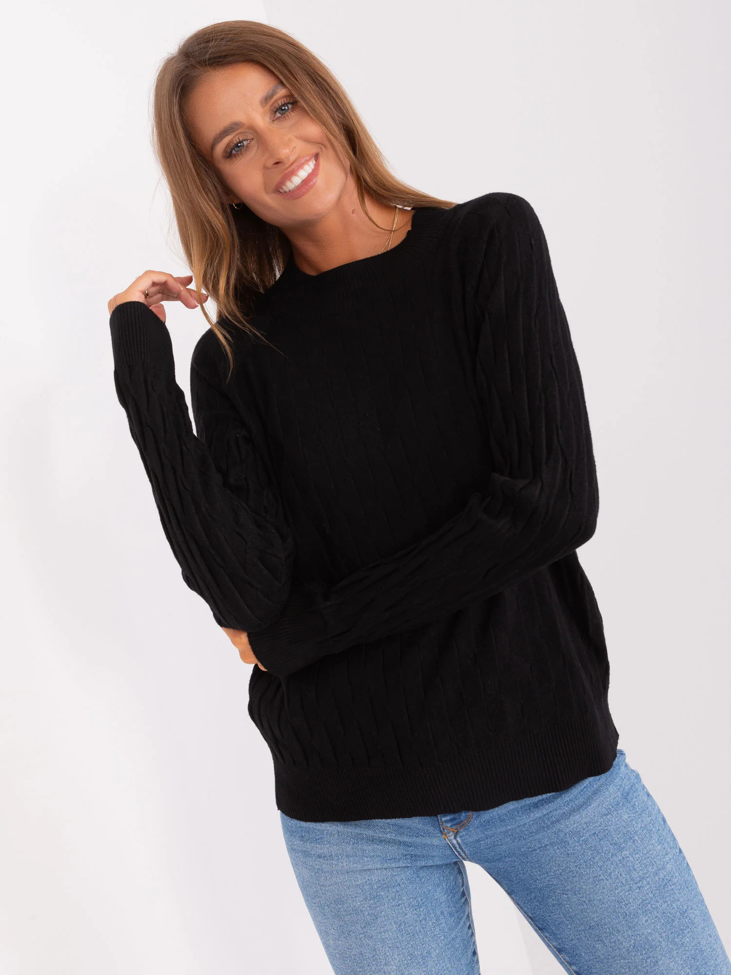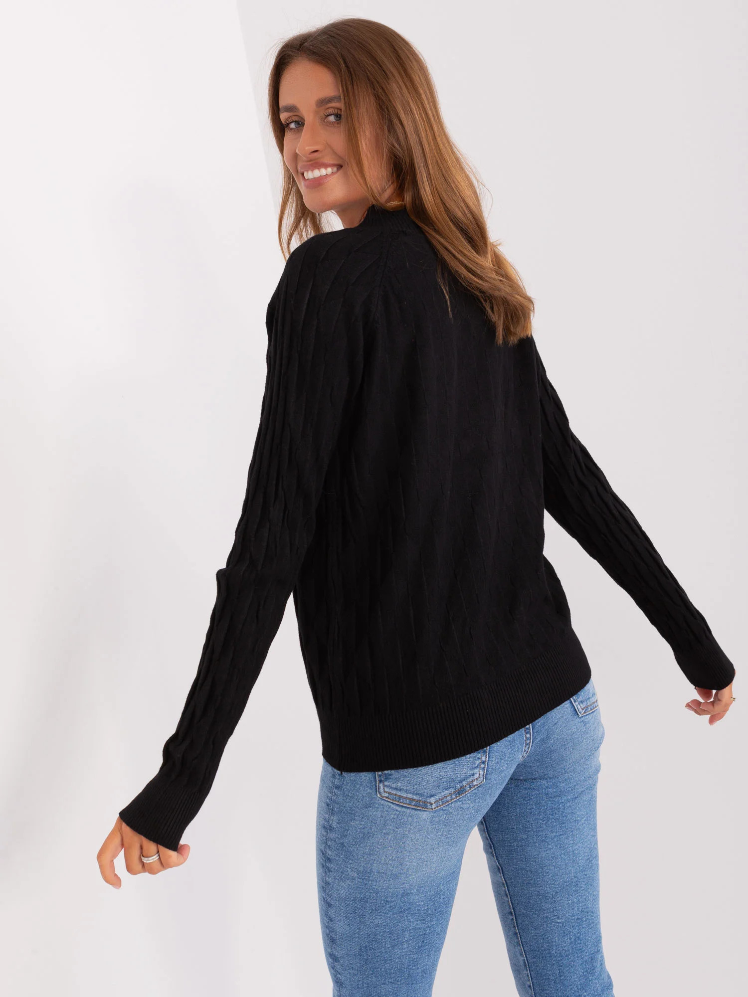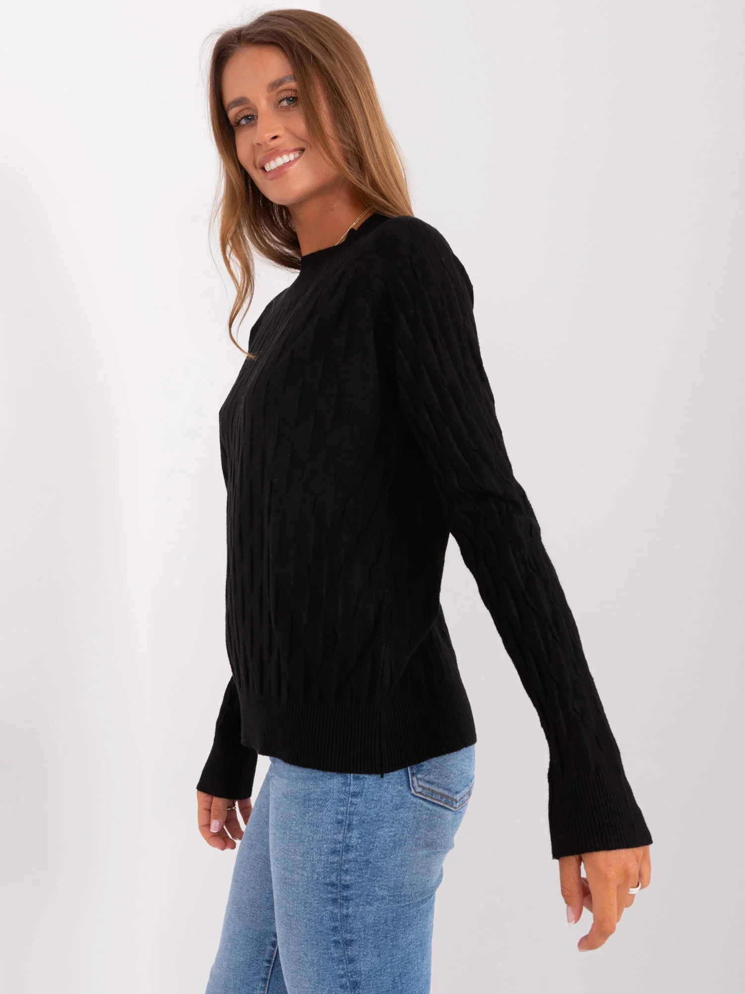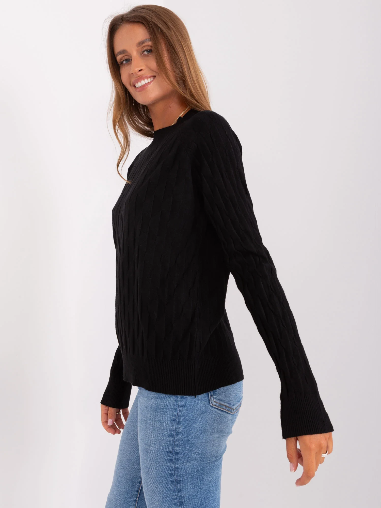Černý dámský klasický svetr s žebrovanými manžetami .