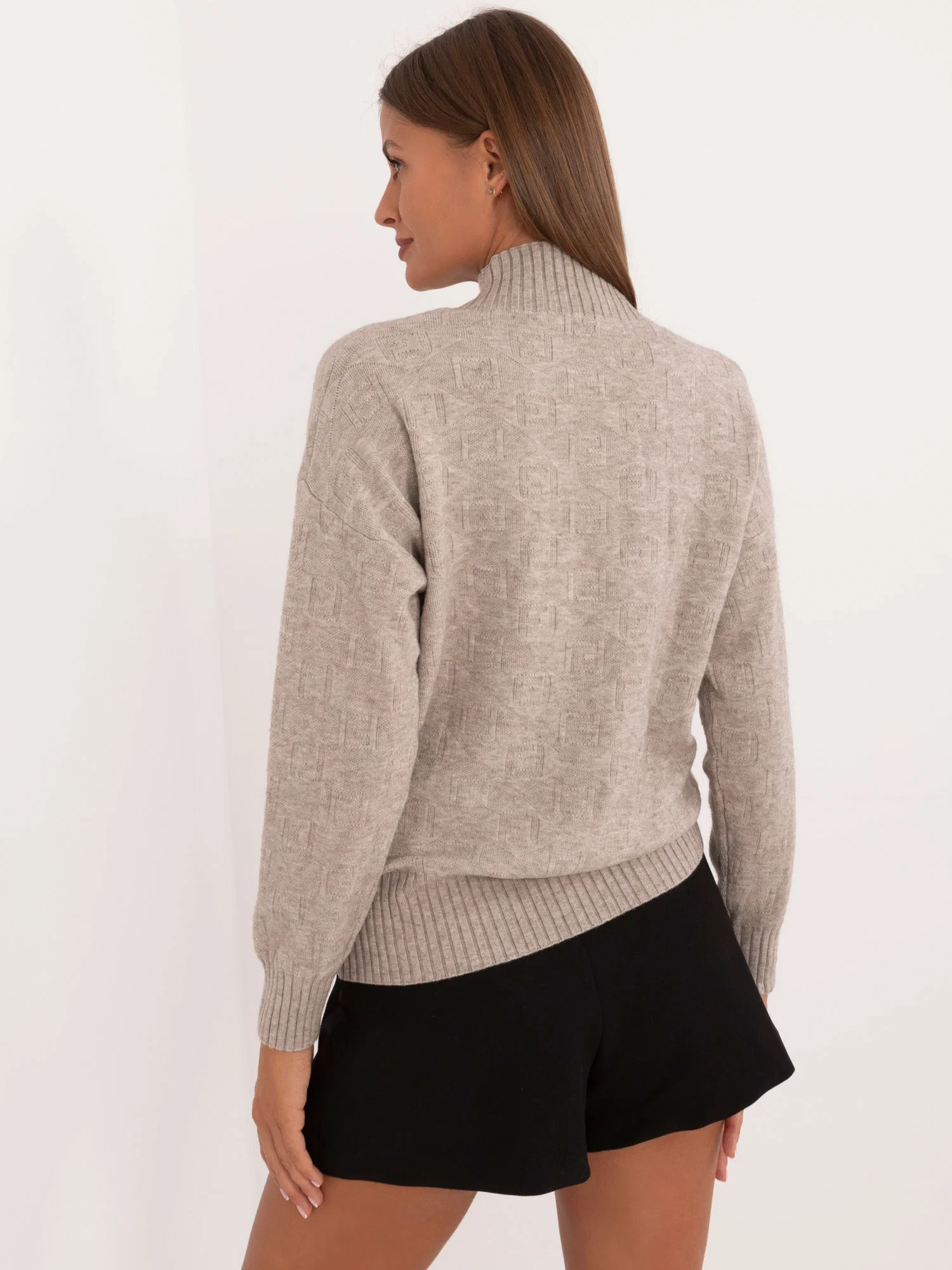 Rozměry svetru v jedné velikosti měřené na plocho: šířka v podpaží - 54 cm, délka rukávu - 58 cm, celková délka - 62 cm.