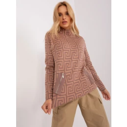 Svetr s rolákem s hnědo-kamenným vzorem.