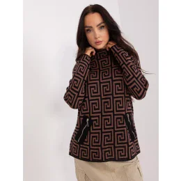 Hnědočerný vzorovaný dámský svetr s rolákem.