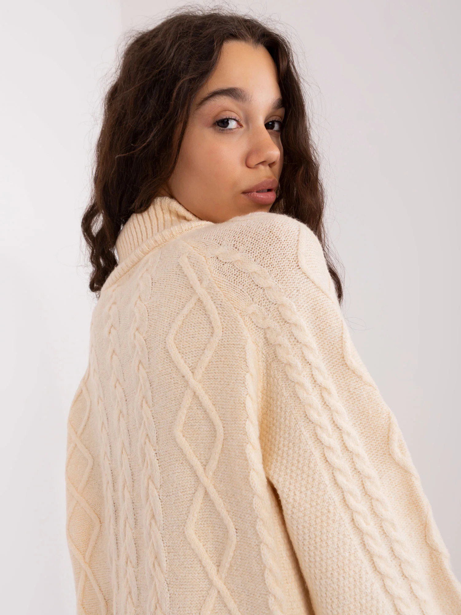 Světle béžový svetr s plédy v oversize střihu .