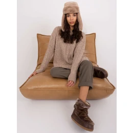 Tmavě béžový kostkovaný svetr s vlnou .
