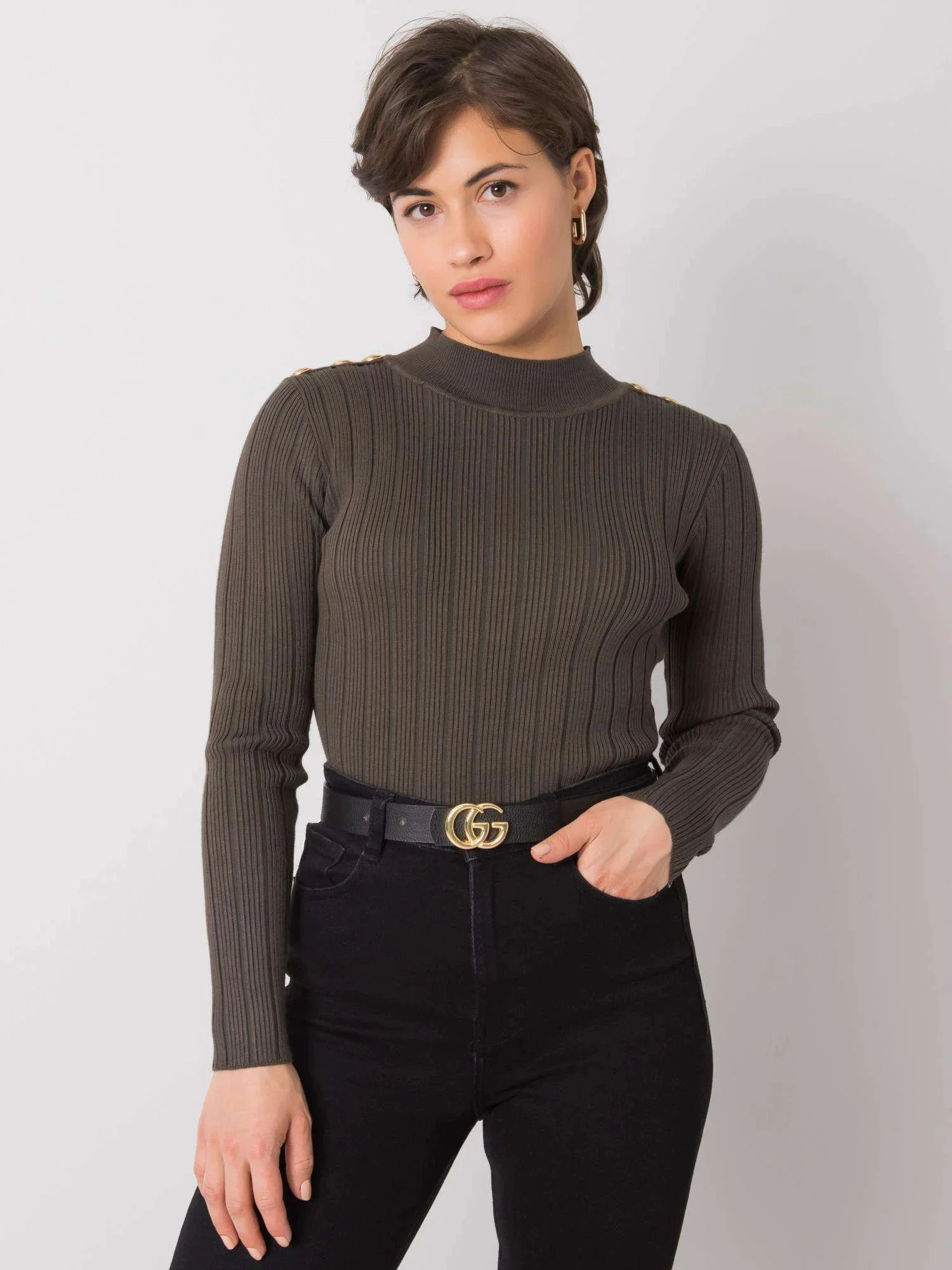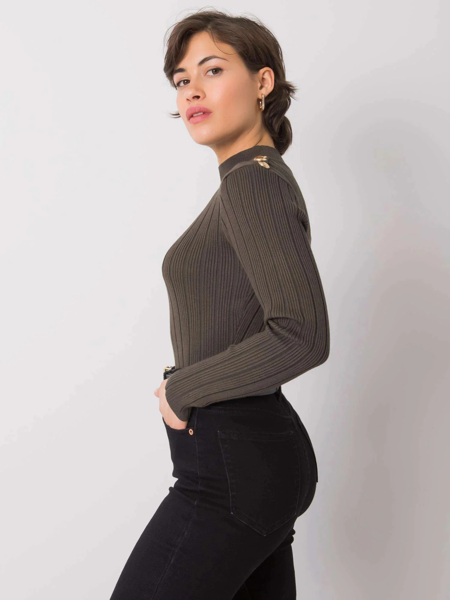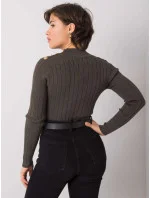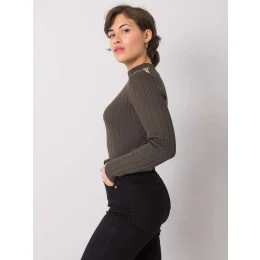 Khaki dámský žebrovaný svetr.