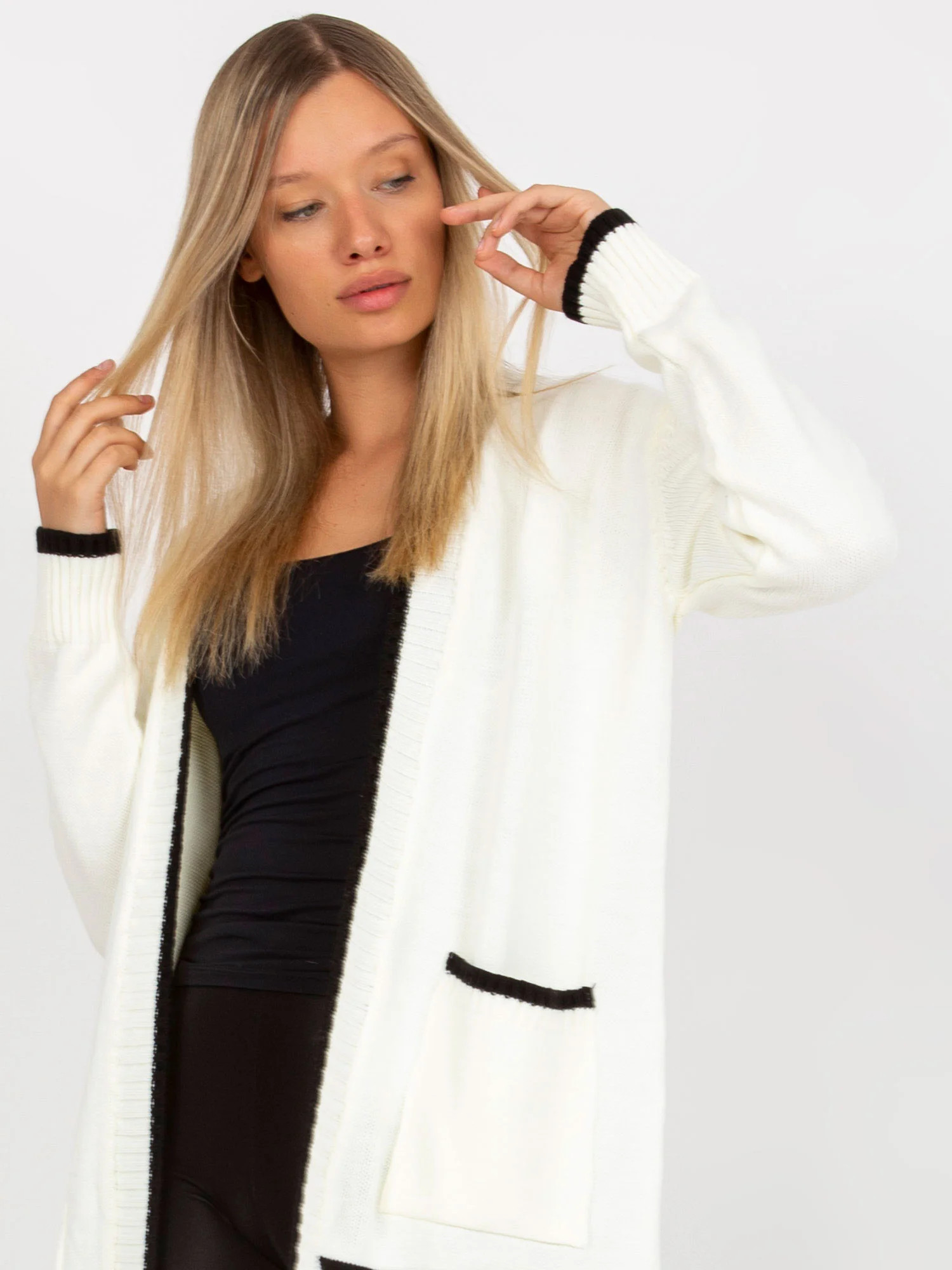 Ecru-černý dámský kardigan s kapsami od RUE PARIS .