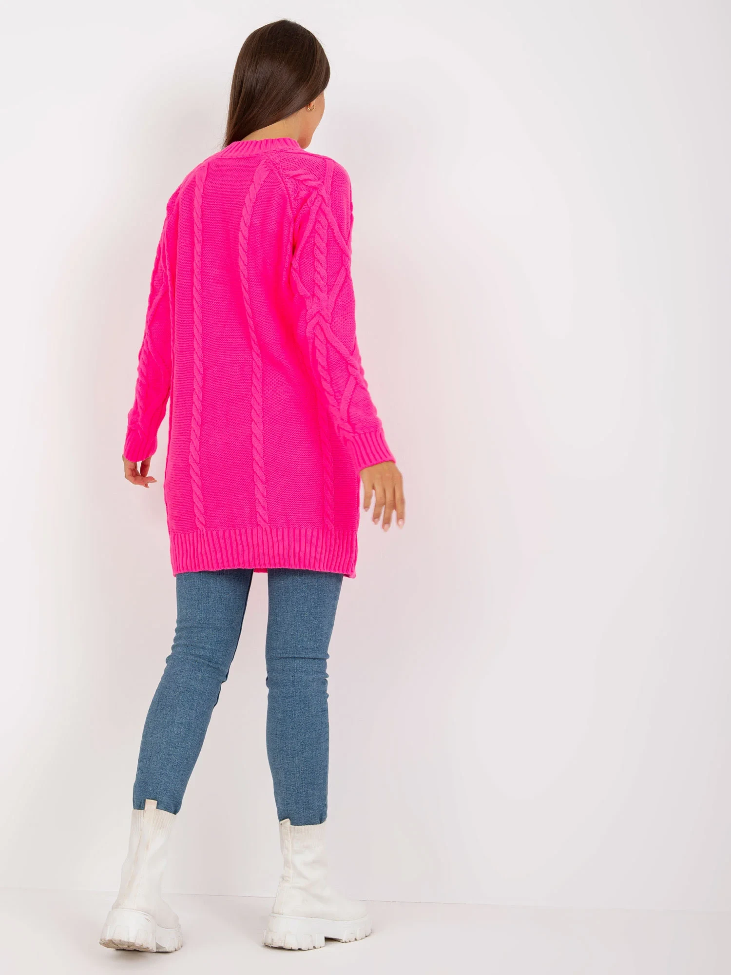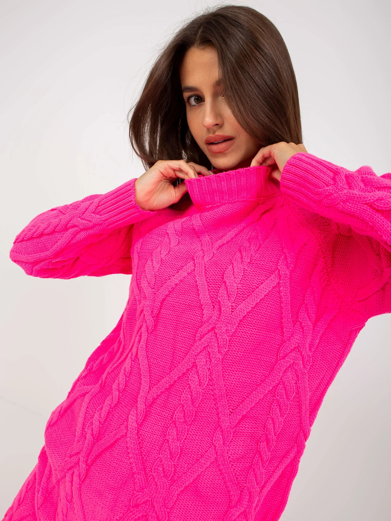 Fluo růžové mini pletené šaty s copánky od RUE PARIS .