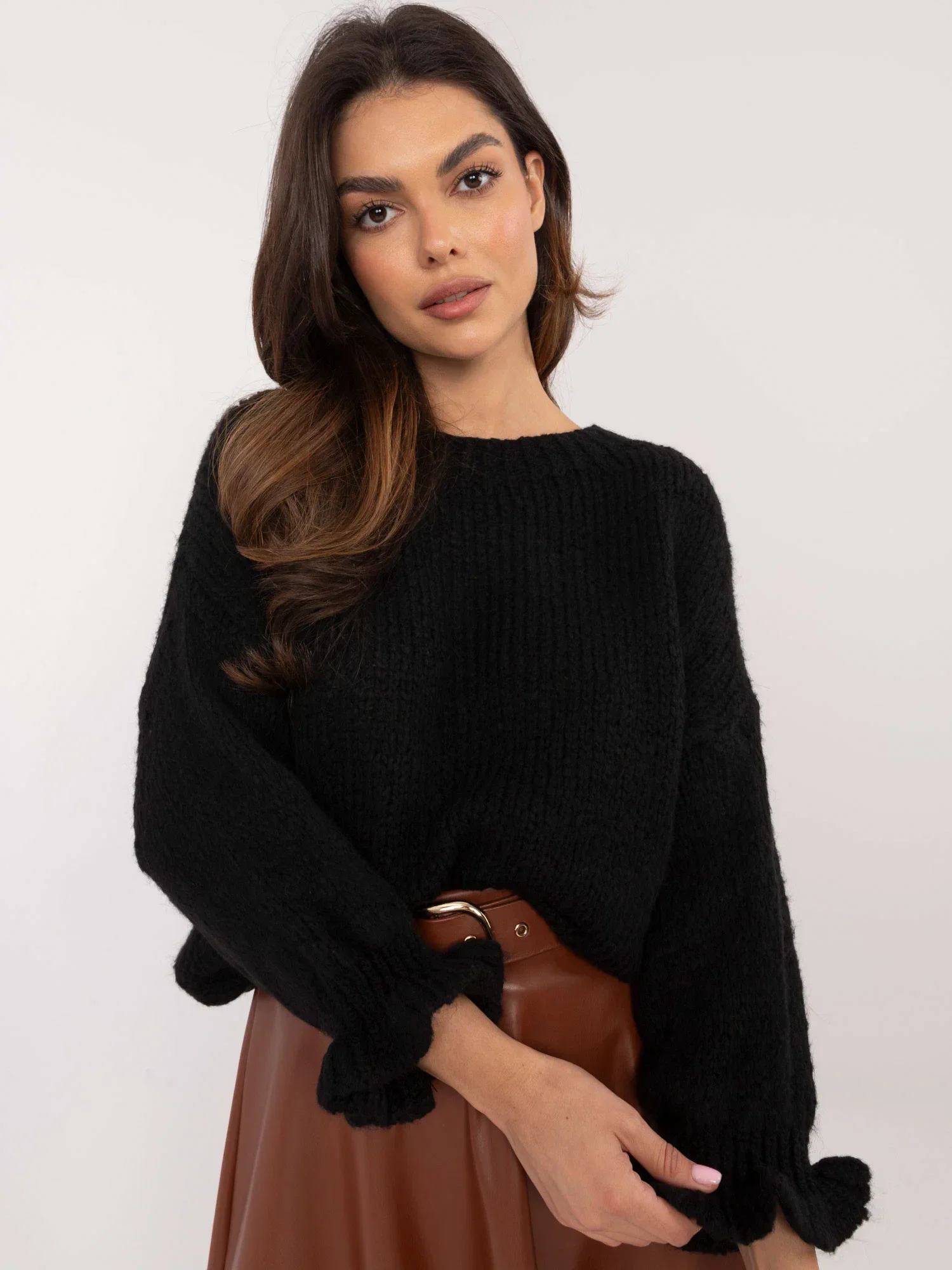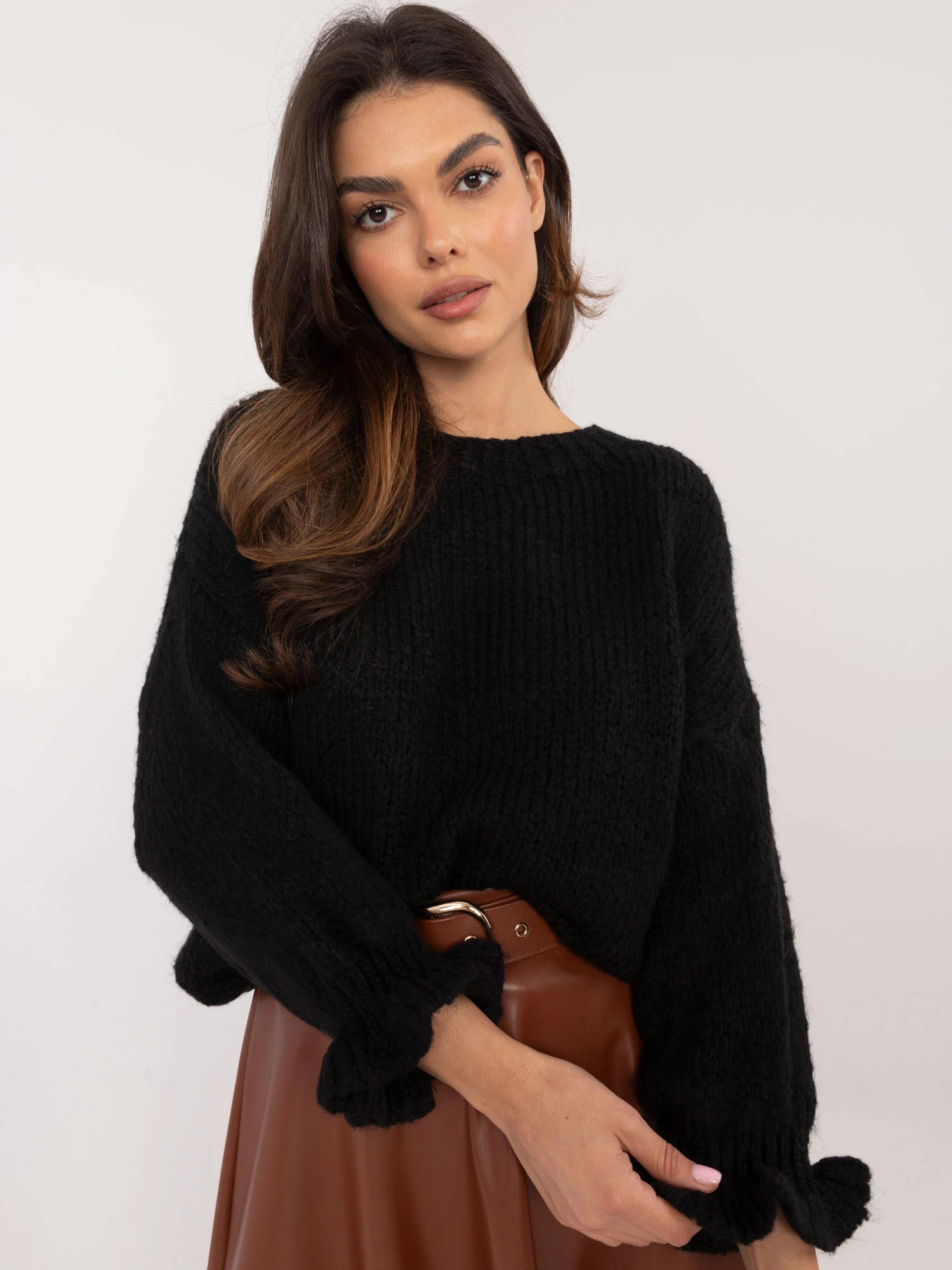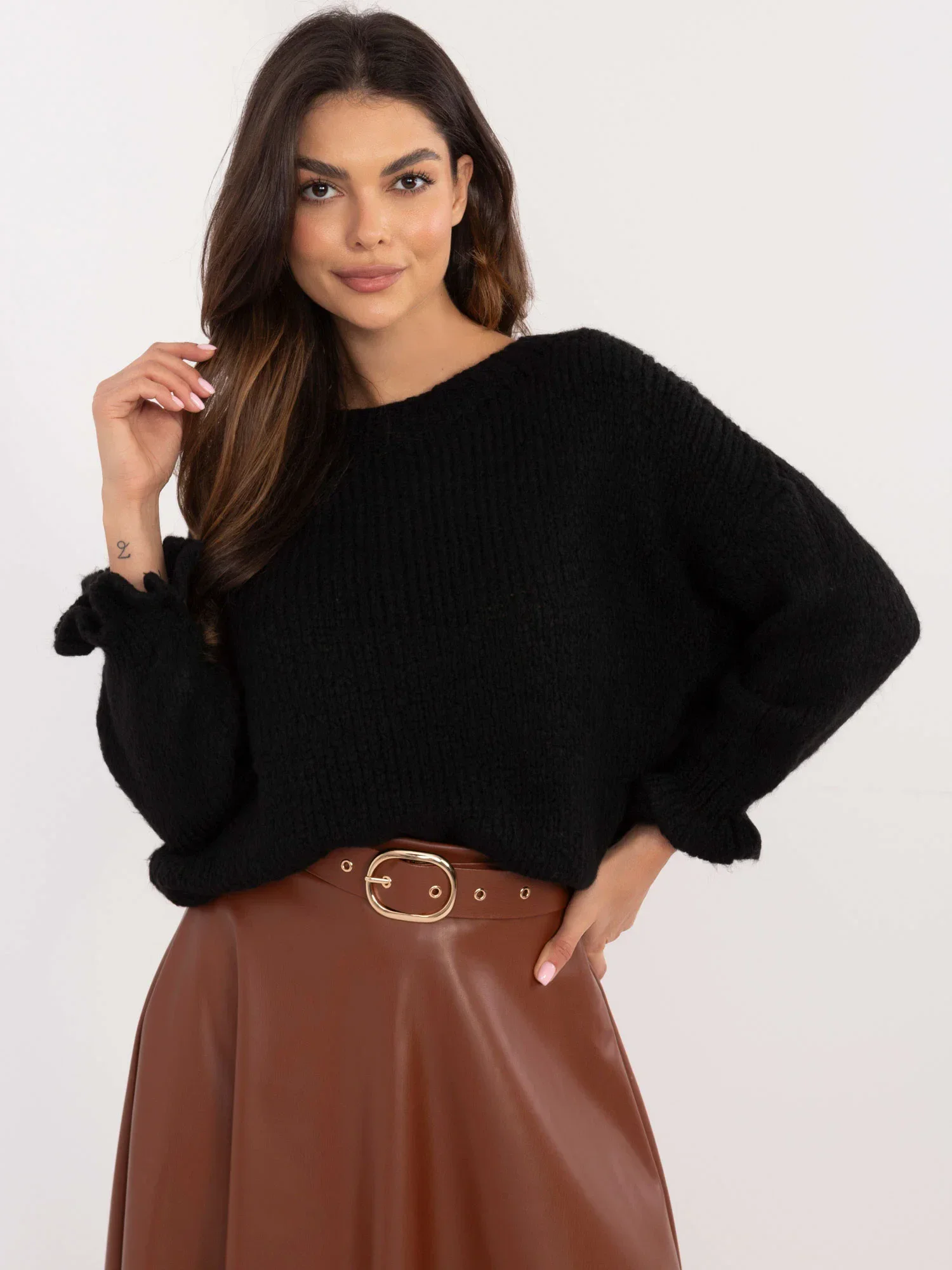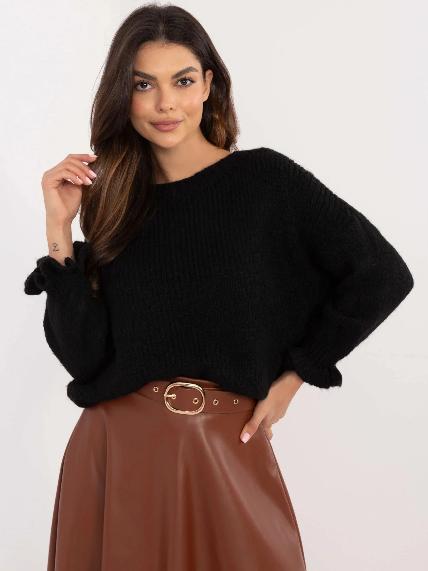 Wymiary swetra w rozmiarze one size mierzone na płasko: szerokość pod pachami - 70 cm, długość całkowita - 84 cm, długość rękawa - 52 cm