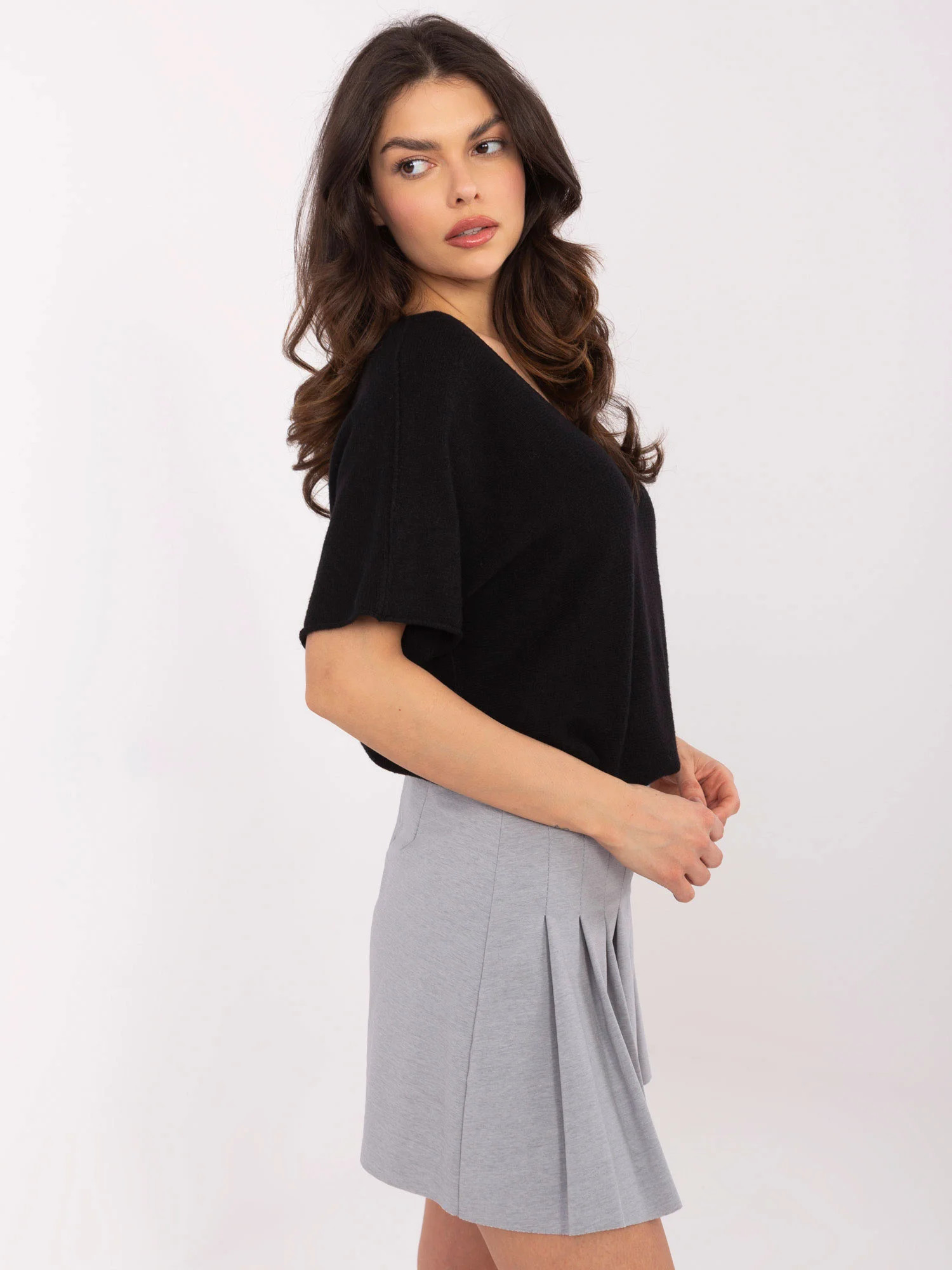 Rozměry svetru v jedné velikosti měřené na plocho: šířka v podpaží - 58 cm, délka rukávu - 14 cm (od podpaží), celková délka - 65 cm, šířka v bocích - 59 cm.