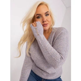 Šedý dámský plus size svetr s výstřihem do V .