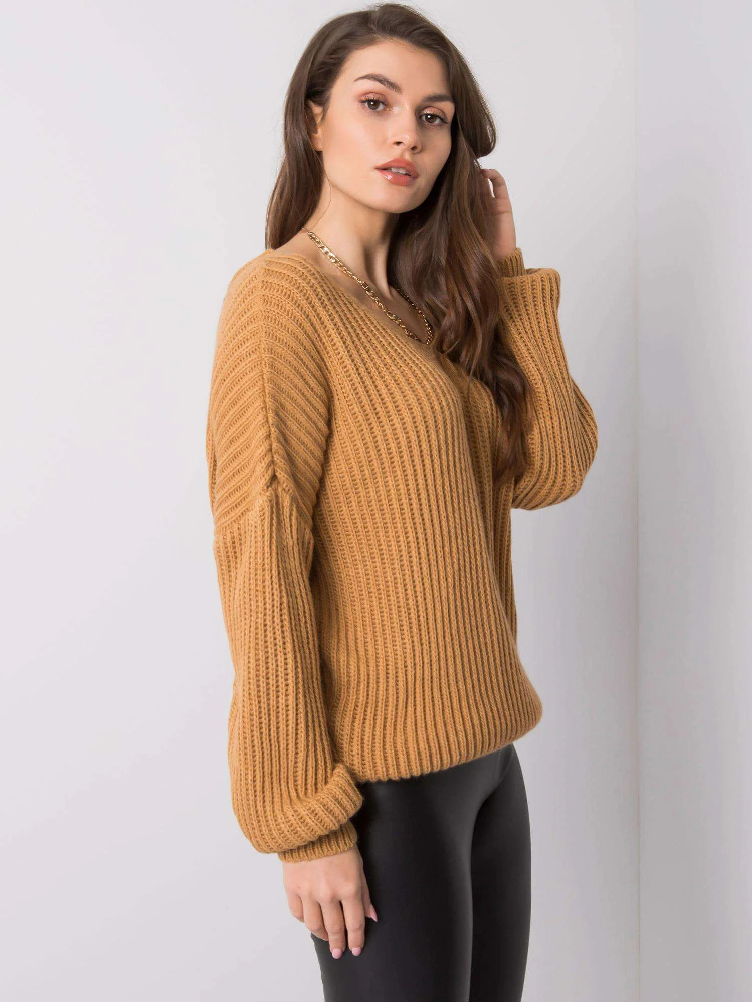 OCH BELLA Velbloudí svetr s výstřihem na zádech.