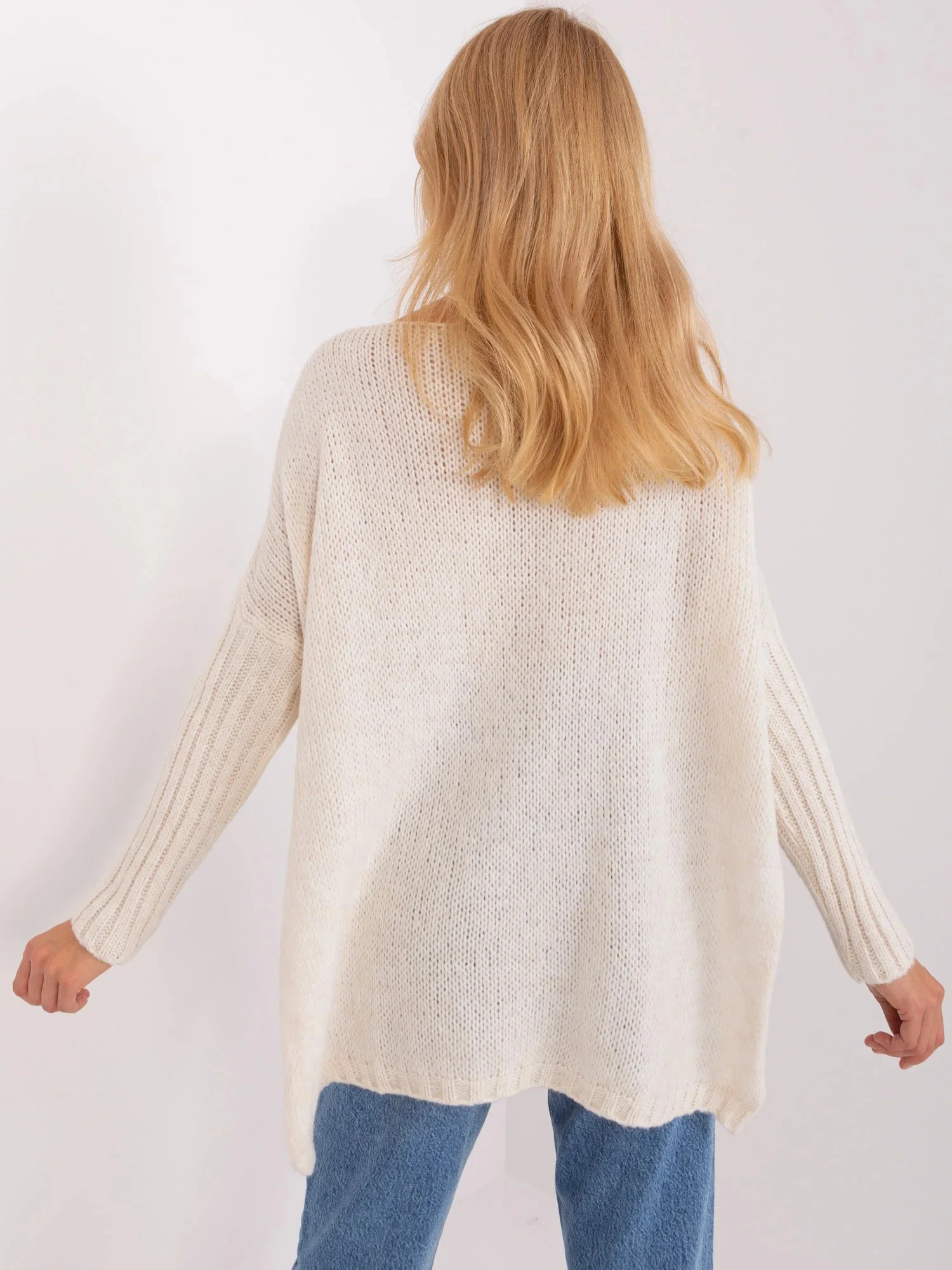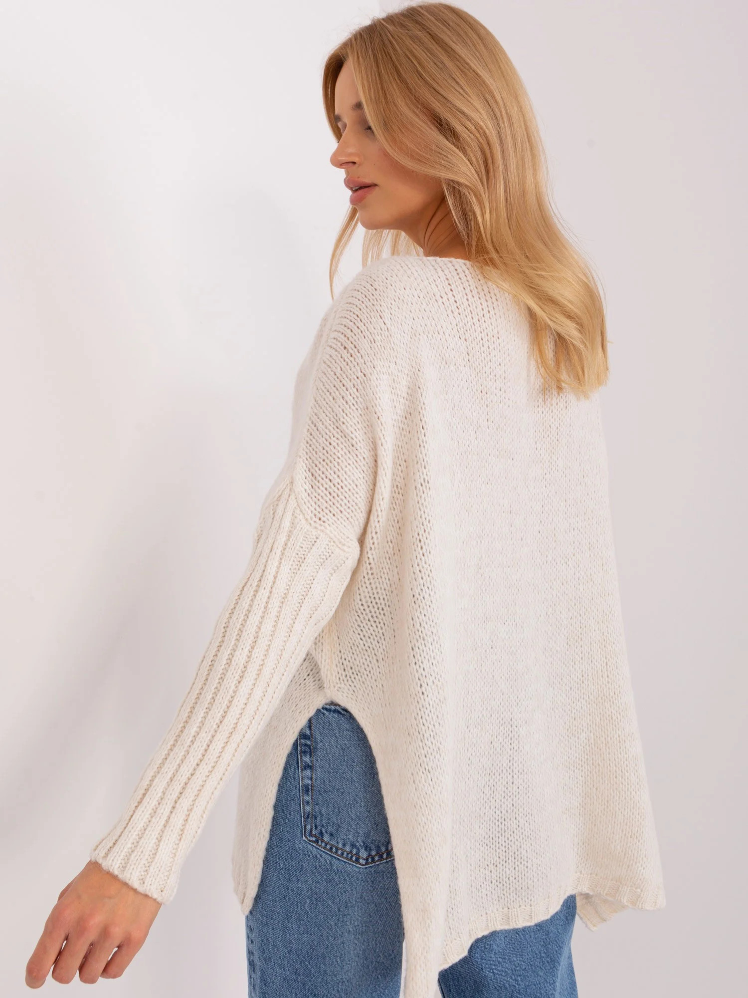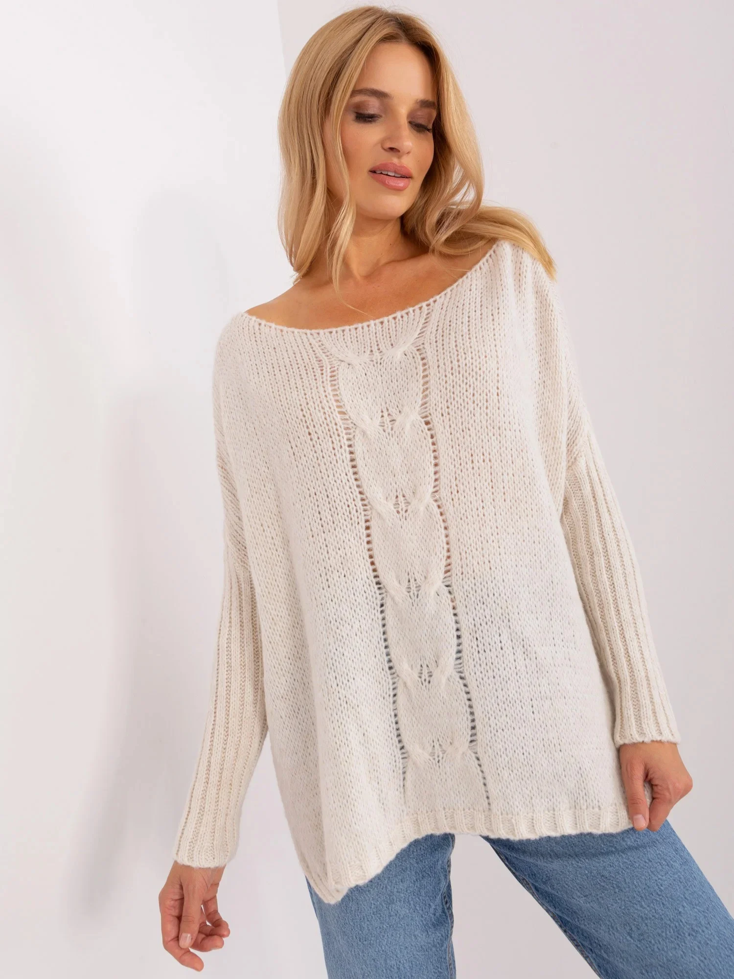 Dámský svetr volného střihu v barvě ecru značkyOCH BELLA.