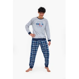 Junior chlapecké pyžamo Šedá s tmavě modrou vzor model 21875949 - Cornette