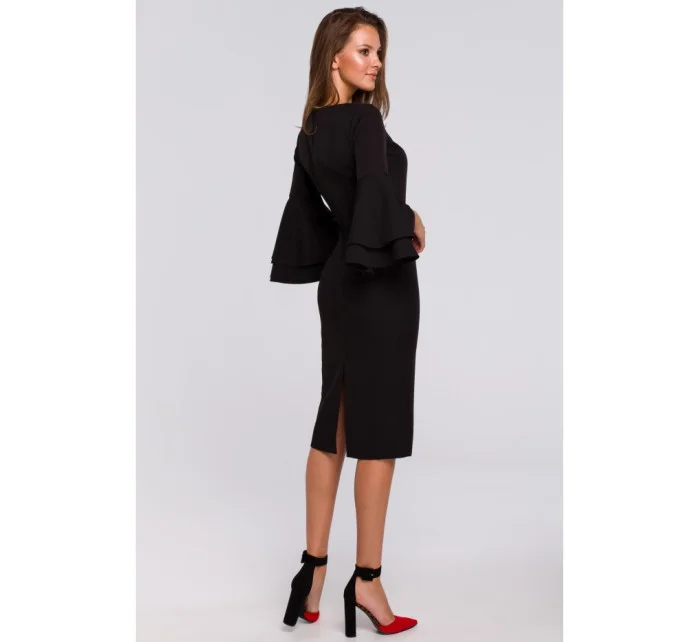 K002 Plášťové šaty s volánkovými rukávy - černé