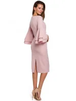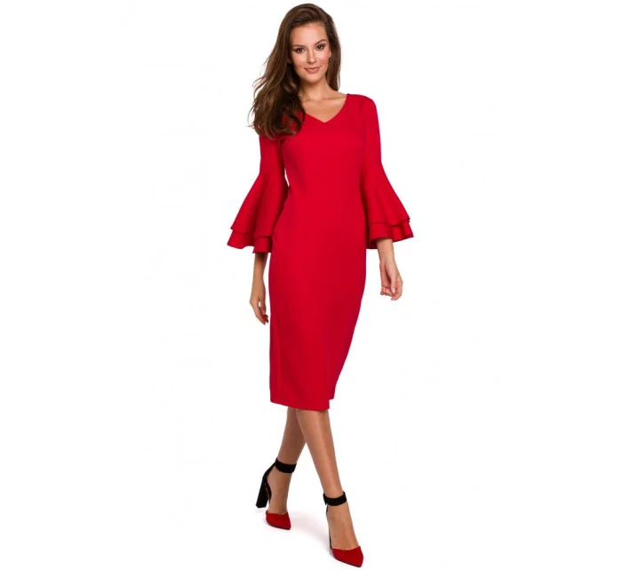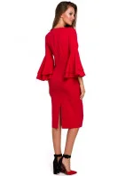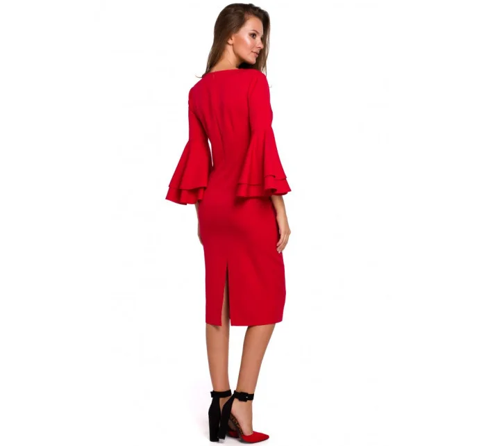 95% polyester 5% elastan Dodejte svému večernímu outfitu trochu dramatičnosti díky těmto pouzdrovým šatům s přiléhavou siluetou a úžasnými zvonovými rukávy, které krásně splývají s každým vaším pohybem. PODROBNOSTI O PRODUKTU: pouzdrové šaty z tkané látky s délkou pod kolena výstřih do V tříčtvrteční volánové rukávy zadní větrací otvor skrytý zip na zádech Modelka měří 175 cm a nosí velikost S