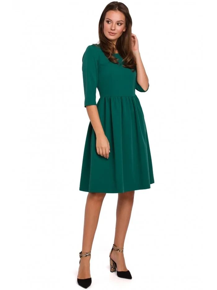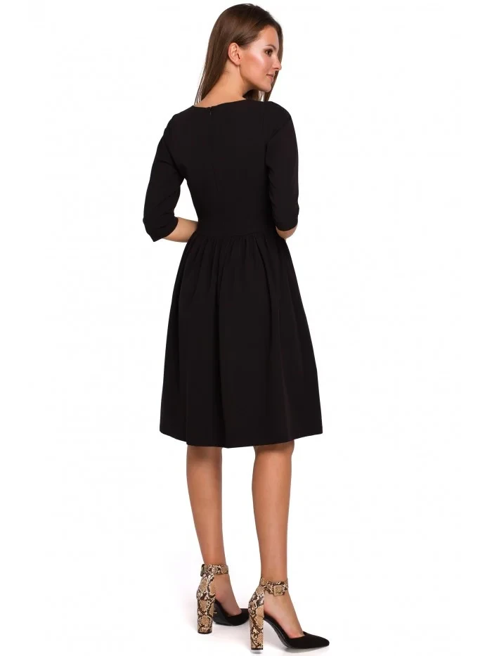 75% polyester 20% wiskoza 5% elastan Tyto klasické šaty ve fitted střihu, které se příjemně pohupují při každém vašem pohybu, si zamilujete. Živůtek je přiléhavý k tělu, doplněný decentním zaobleným výstřihem a bohatou sukní nabíranou v pase. DETAILY PRODUKTU: Tkaná látka Přiléhavý živůtek Zaoblený výstřih Tříčtvrteční rukávy Nabraný pas Rozšířená sukně ke kolenům Skrytý zip na zádech Modelka měří 175 cm a nosí velikost S