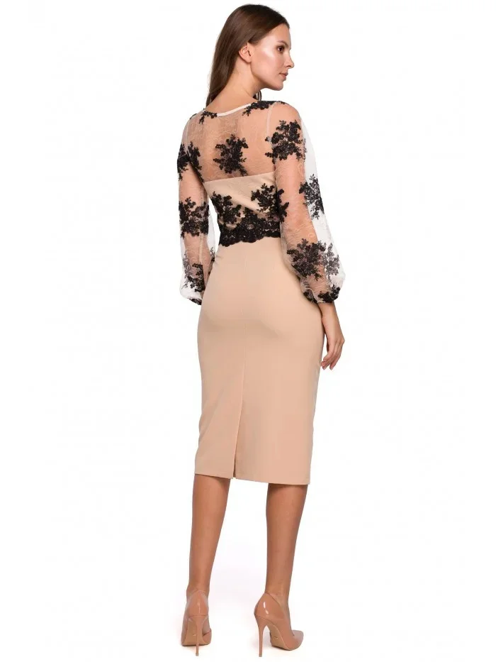 Produkt Dámské šaty s Topem K013 Béžová s černou - Makover prodáváme v těchto velikostech: XXLa barvách béžová-černá5903068459283