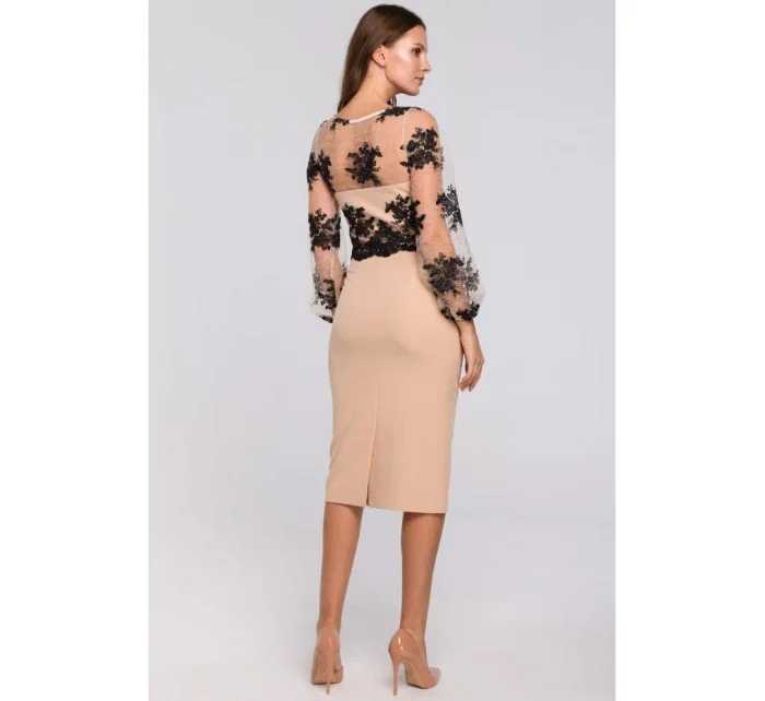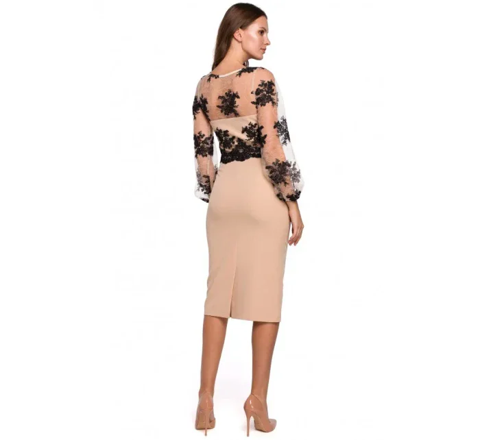 Dámské šaty s Topem K013 Béžová s černou - Makover