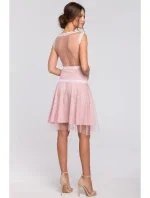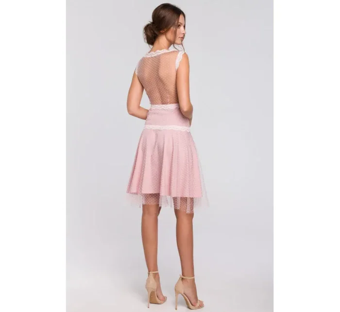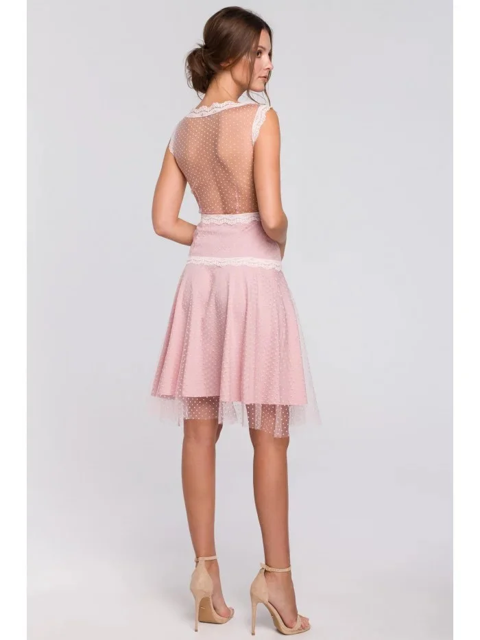 95% polyester 5% elastan TULLE: 50% nylon 50% polyester Krásné šaty plné působivých detailů. Vyrobené z tylu s tkanými puntíky a jemným krajkovým lemem. Přizpůsobené linii boků, krásně zeštíhlují postavu. Průhledná záda vypadají fenomenálně! PODROBNOSTI O PRODUKTU: Tkaná látka a puntíkatý tyl s krajkovým lemováním Šaty áčkového střihu Bez rukávů Vrstvené šaty Skrytý boční zip Délka nad kolena Modelka měří 175 cm a nosí velikost S