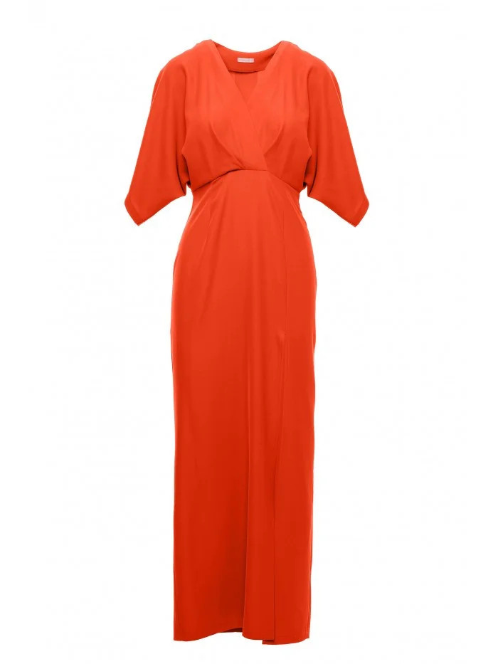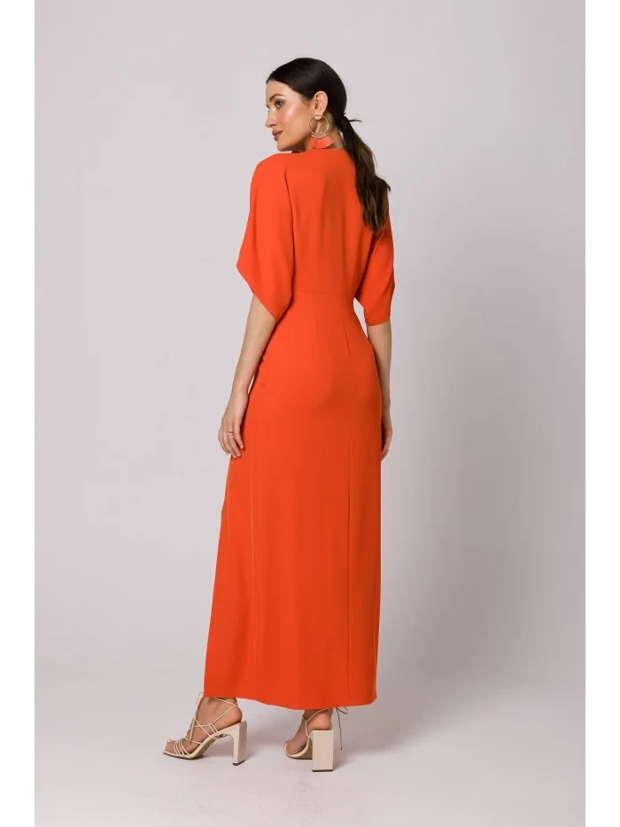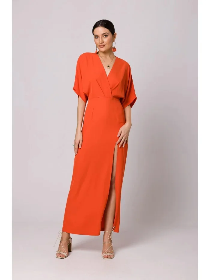 95 % polyester 5 % elastan Milujeme dlouhou siluetu, vysoký rozparek na nohavicích a kimonový vzor rukávů těchto maxi šatů. PODROBNOSTI O PRODUKTU: maxi šaty z tkané látky s vysokým rozparkem na nohou výstřih do V kimonový vršek krátké rukávy skrytý boční zip bez podšívky Naše modelka je vysoká 175 cm a nosí velikost S