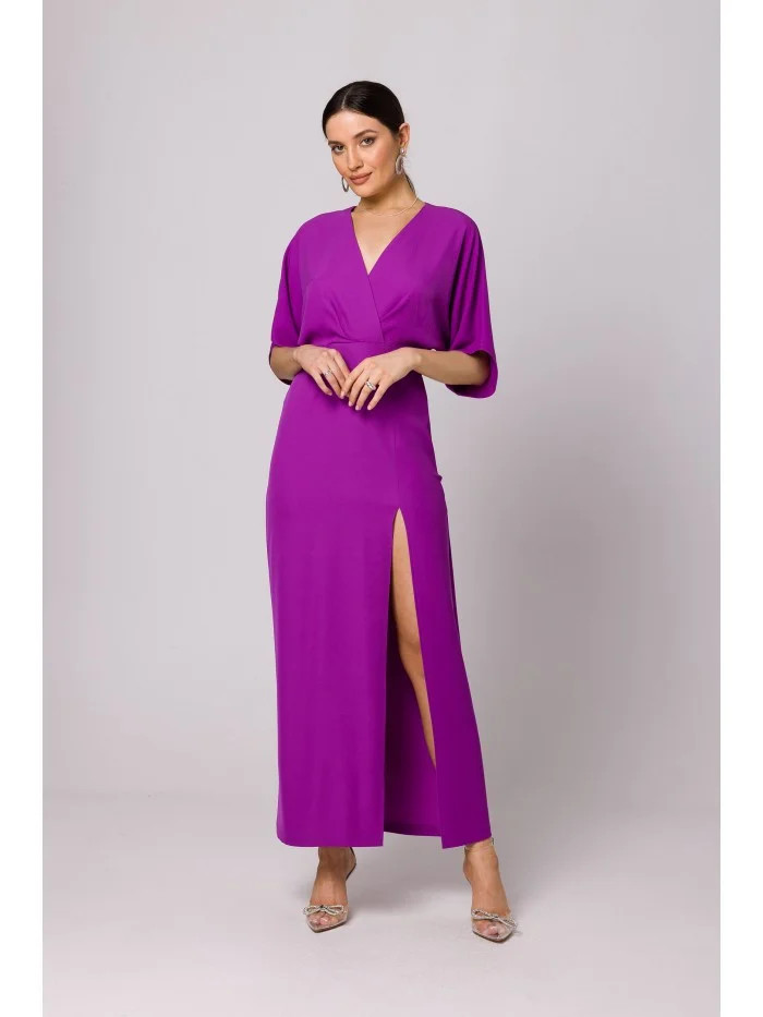 95 % polyester 5 % elastan Milujeme dlouhou siluetu, vysoký rozparek na nohavicích a kimonový vzor rukávů těchto maxi šatů. PODROBNOSTI O PRODUKTU: maxi šaty z tkané látky s vysokým rozparkem na nohou výstřih do V kimonový vršek krátké rukávy skrytý boční zip bez podšívky Naše modelka je vysoká 175 cm a nosí velikost S