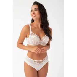 PRZÓD: tiul stabilny + koronka stabilna, cięcia zaakcentowane naszytymi od spodu taśmami, w dole dwie warstwy tiulu elastycznego, na bokach tiul elastyczny pojedynczy, w pasie na środku przodu zdobina z logo, nogawki wykończone wąską taśmą elastyczną