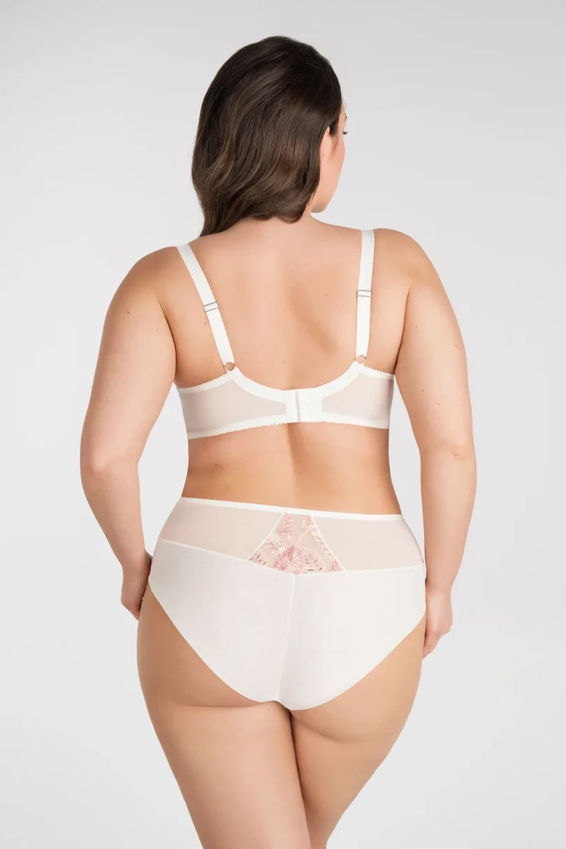 Tył z tiulu elastycznego wykończony na gładko, aby majtki nie odznaczały się pod ubraniem