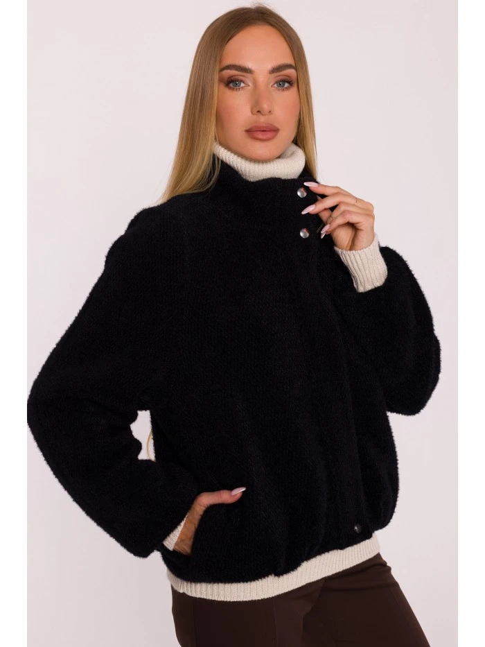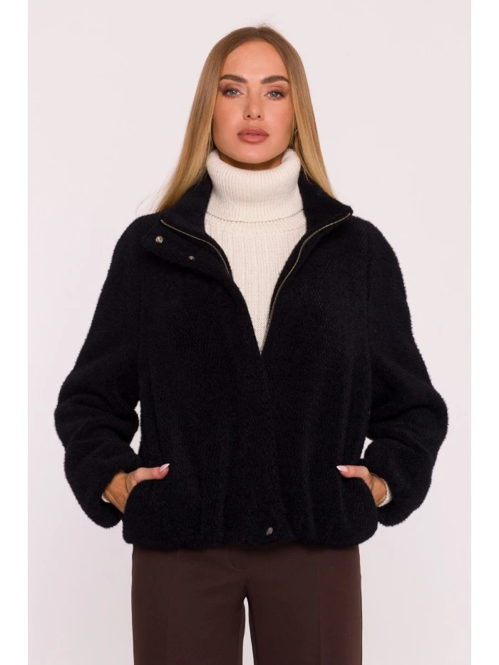 HLAVNÍ LÁTKA: 70% polyester 30% nylon PODŠÍVKA: 100% polyester MATERIÁL Látka: měkký úplet s krátkým vlasem PODROBNOSTI O PRODUKTU Límec: stojáček Zapínání: zip, knoflíky ve spodní části nápletu a na límci Rukávy: dlouhé, široké, raglánové Kapsy: boční kapsy Podšívka: plně podšitá Model: M885 Navrženo a vyrobeno v Polsku Modelka na fotografii měří 171 cm a má na sobě velikost S STŘIH A VÝSTŘIH Střih: volný, uvolněný Délka: po boky Tvar: mírně oversized, měkce obepínající tělo
