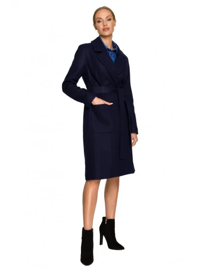 kabát s páskem a kapsami tmavě modrý model 18004303 - Moe