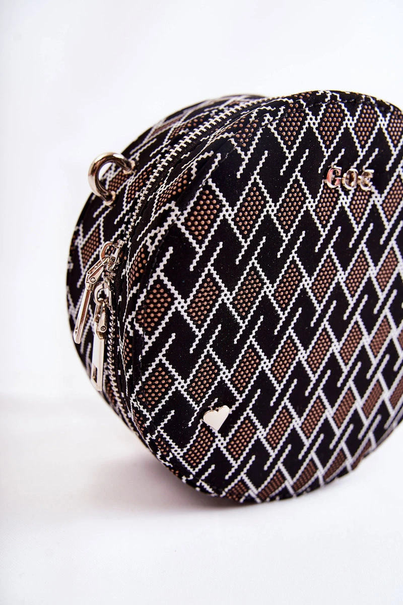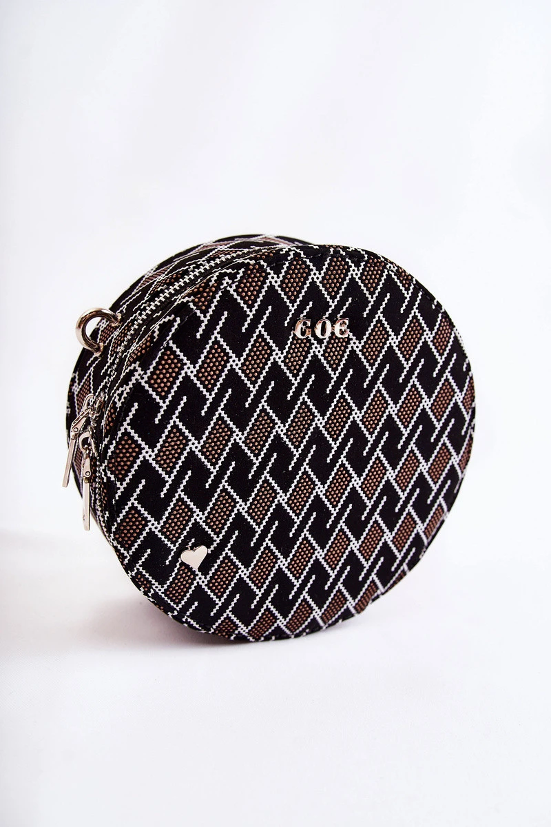 Krásná kabelka - kufr od značky GOE! Vyrobeno z vysoce kvalitního materiálu. Na přední straně je logo značky GOE a ozdobný emblém v podobě srdce. Taška má jednu komoru uzavíratelnou na zip. Uprostřed je jedna otevřená kapsa a jedna uzavíratelná na zip. Podšívka z látky s ozdobným vzorem. Taška má jeden nastavitelný, odnímatelný popruh.
