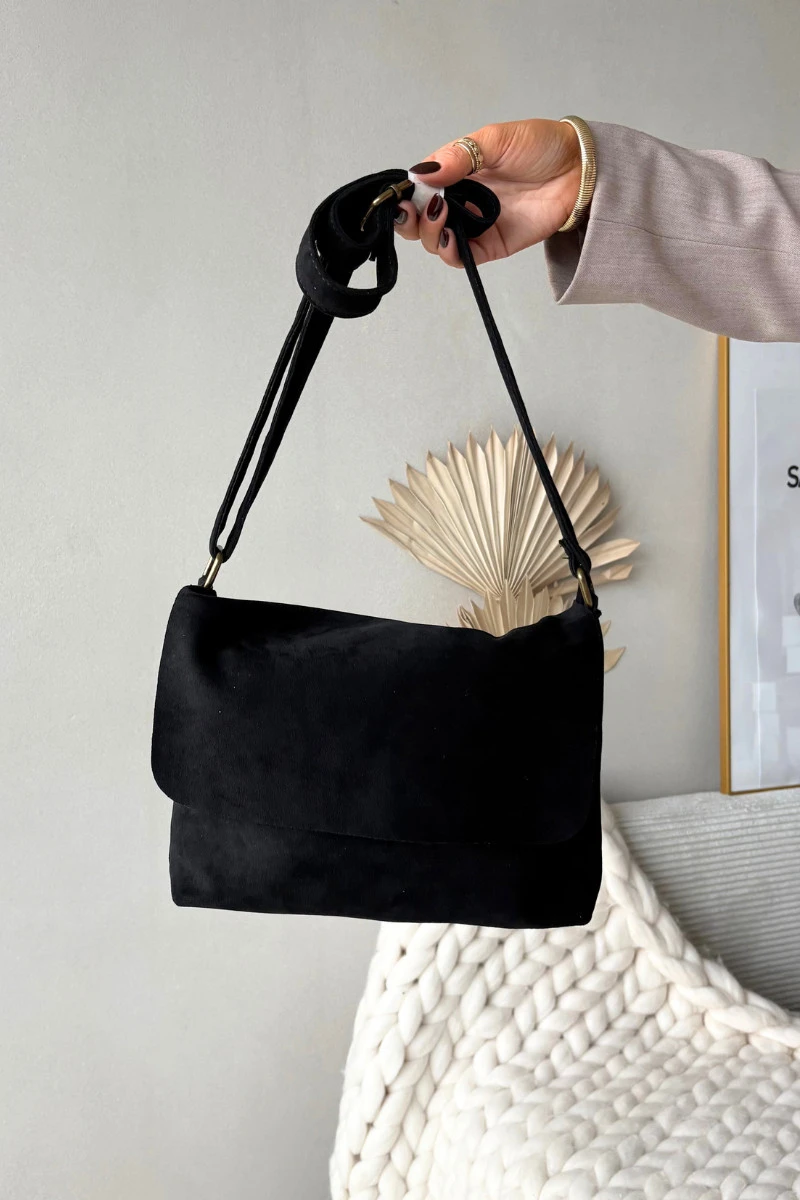 Kabelka poštovní taška z eko semiše černá Carenza