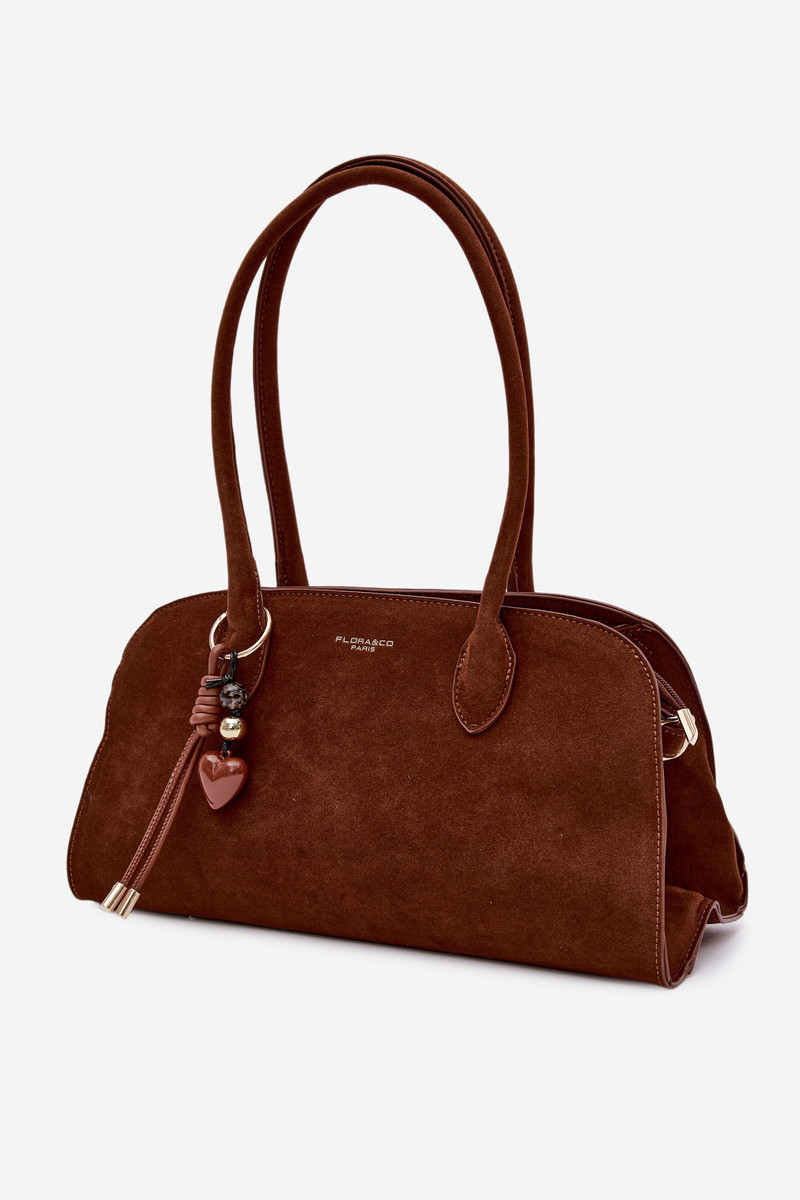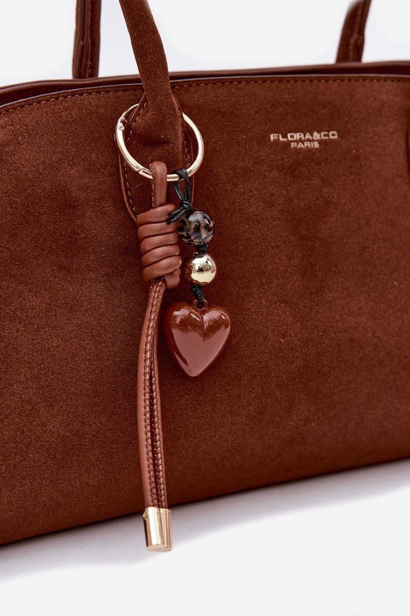 Kabelka s přívěskem a sponkami Eko semiš Camel Violette