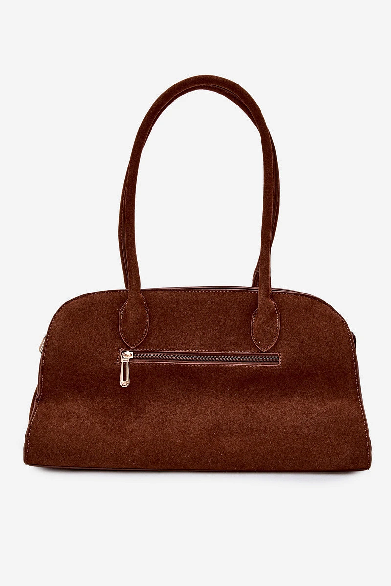Dámská kabelka vyrobená z napodobeniny semiše je stylový a praktický doplněk, který skvěle doplní každodenní outfity. Model je zapínán na zip, což zajišťuje bezpečí uložených věcí. Kabelka má pohodlné držadla na nošení v ruce, což zaručuje komfort při nošení. Celý vzhled je obohacen o ozdobný přívěsek, který dodává kabelce šarm, a dekorativní přezky po stranách, které podtrhují její moderní a stylový vzhled. Ideální volba pro ženy, které ocení spojení funkčnosti a módních detailů. Rozměry: Šířka - 35,5 cm Výška - 19 cm Tloušťka - 13,5 cm.